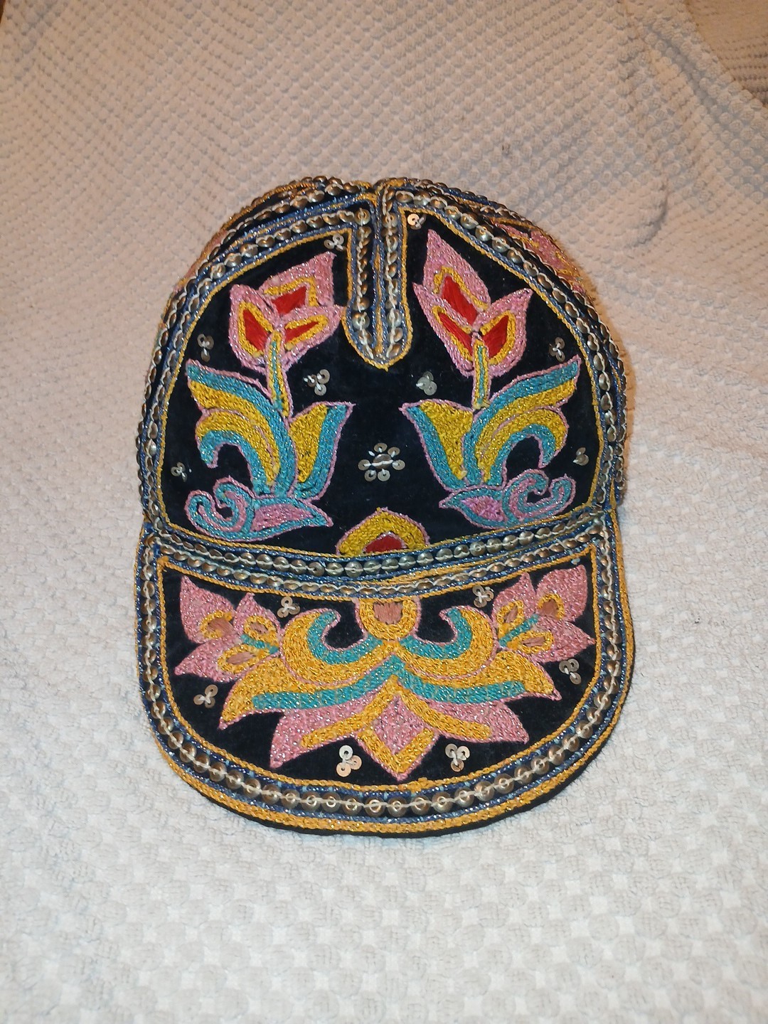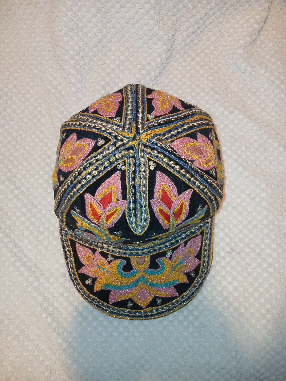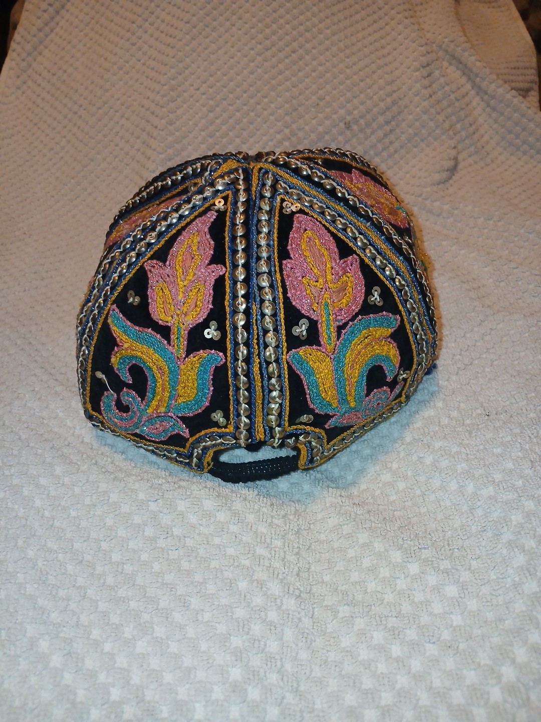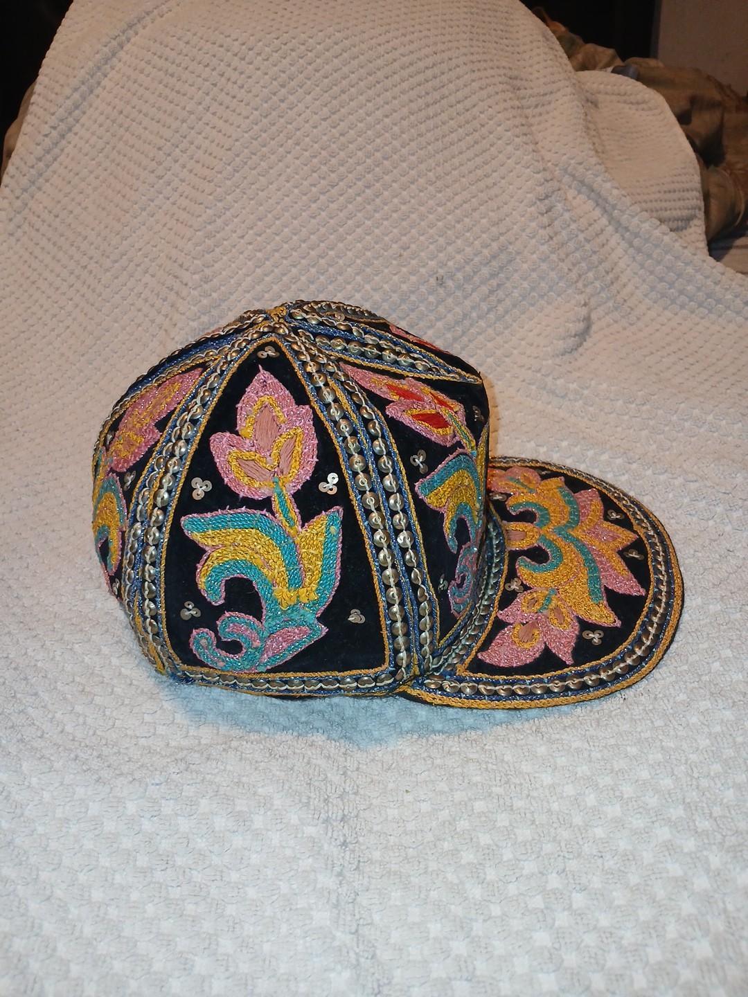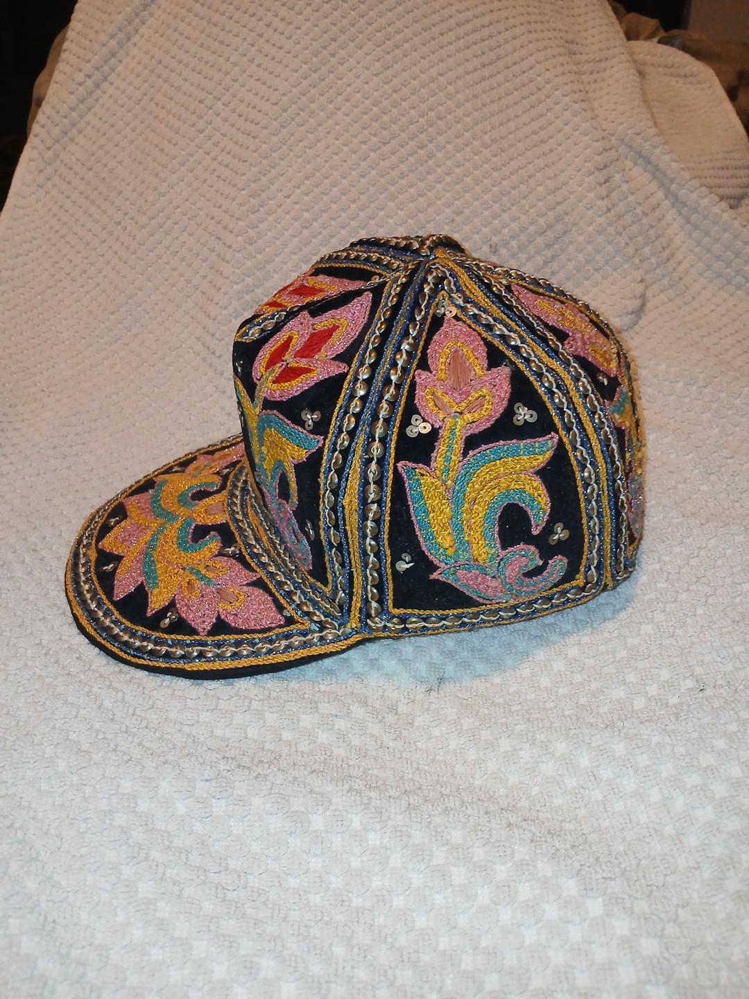 как выглядит Vintage 1980s Hat Floral Design Sequin Metal Hand Made BRIM DAMAGE SOLD AS IS фото