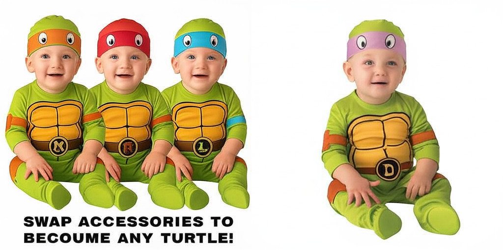 как выглядит Infant Nickelodeon Teenage Mutant Ninja Turtle Costume All 4 Turtles 6-12 mo фото