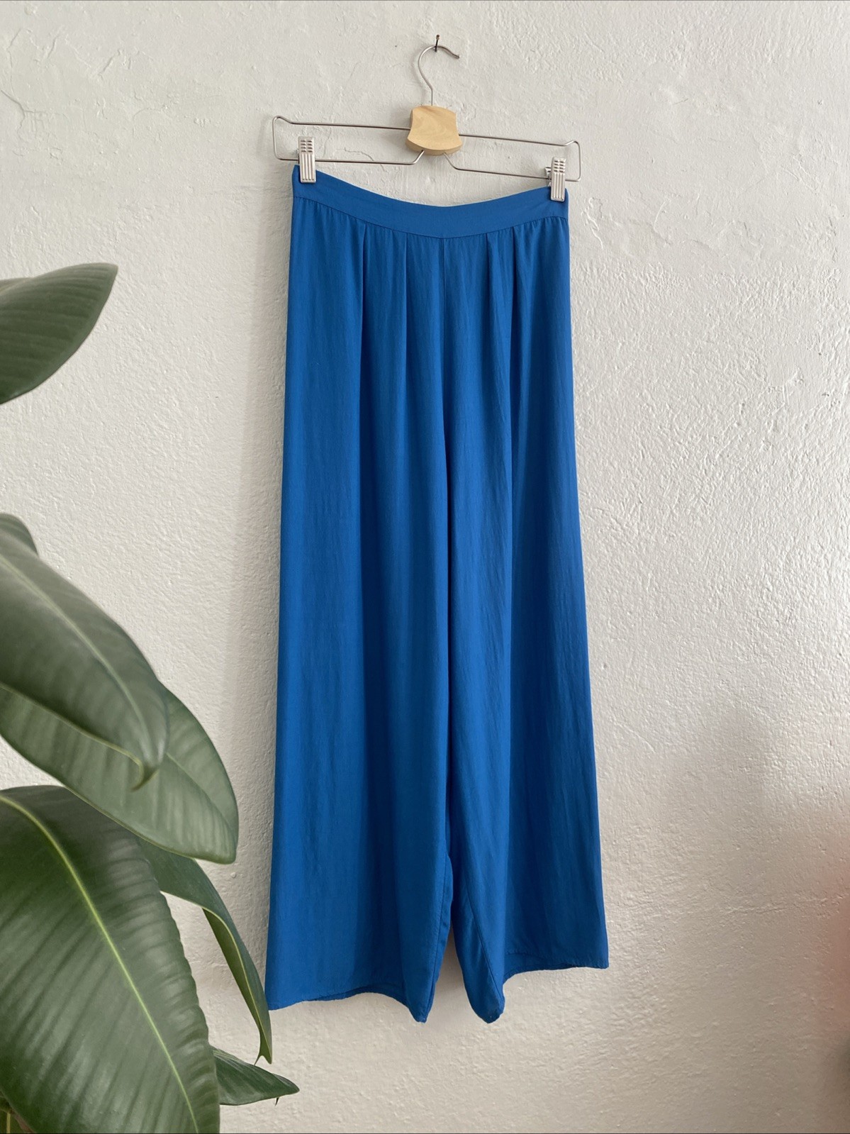 Vintage 40s Royal Blue Wide Leg Pleat Front Rayon Palazzo Lounge Pants Sz XXS XS