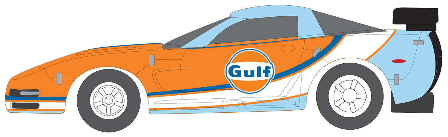 AUTO WORLD '04 Chevy Corvette C5R Gulf-Orange Blue Gulf livery SLOT CAR