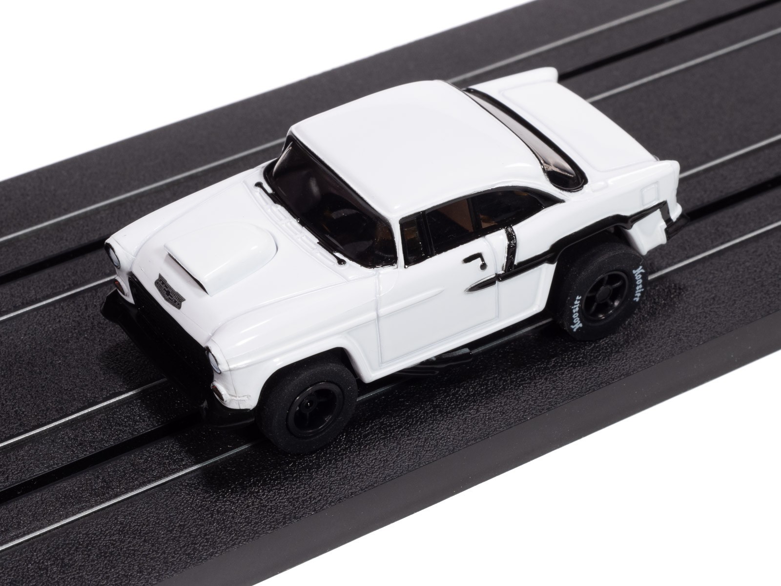 AUTO WORLD '55 Chevrolet Bel Air-Gloss White Gloss Black Xtraction SLOT CAR