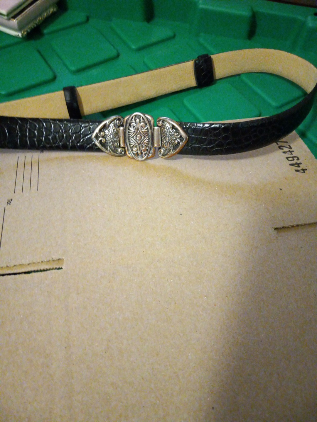 как выглядит Vintage Black Leather Belt With Ornate Silver Buckle. Adjusts In Back To 37 In. фото