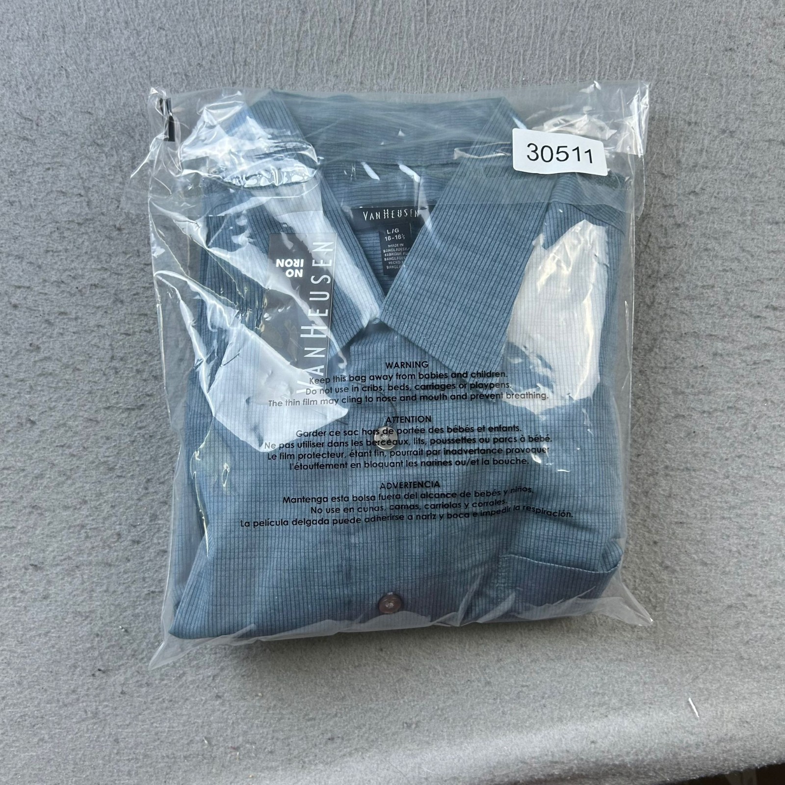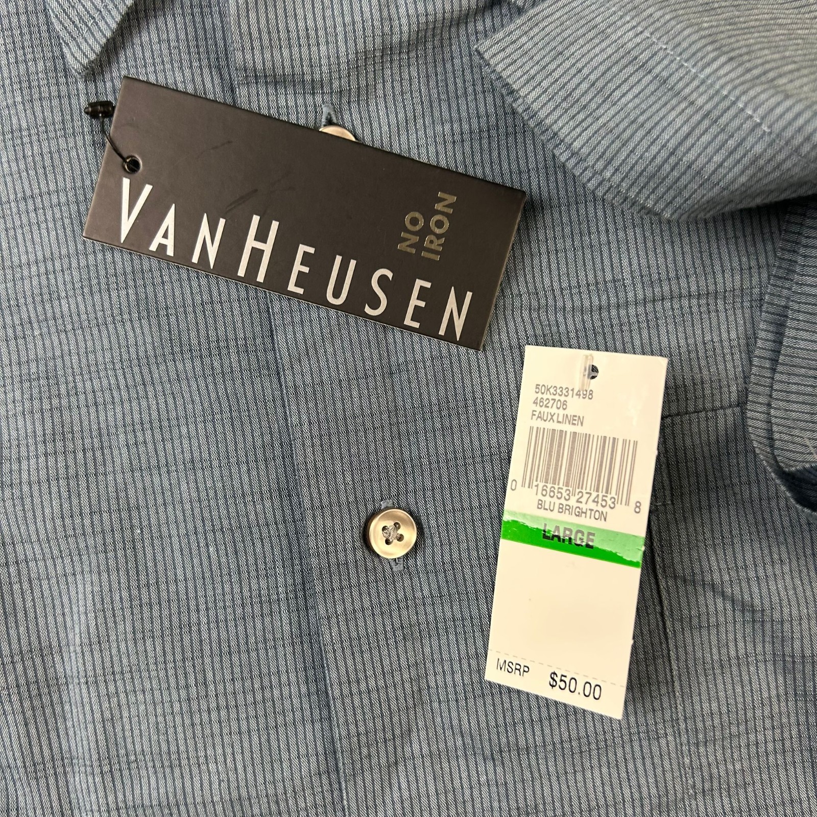Van Heusen Shirt Mens Large 16-16.5 Blue No Iron Button Up Short Sleeves NWT