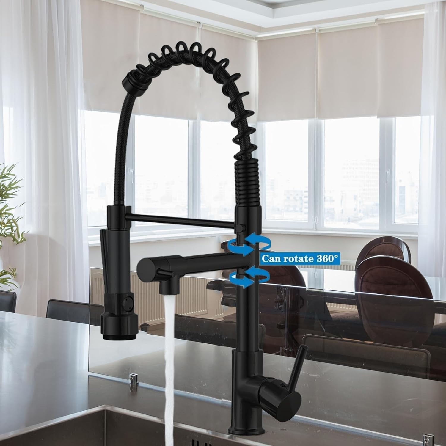 Stylish Black Kitchen Faucet w/ Pull Down Sprayer - Dual Spout, Stainless Steel