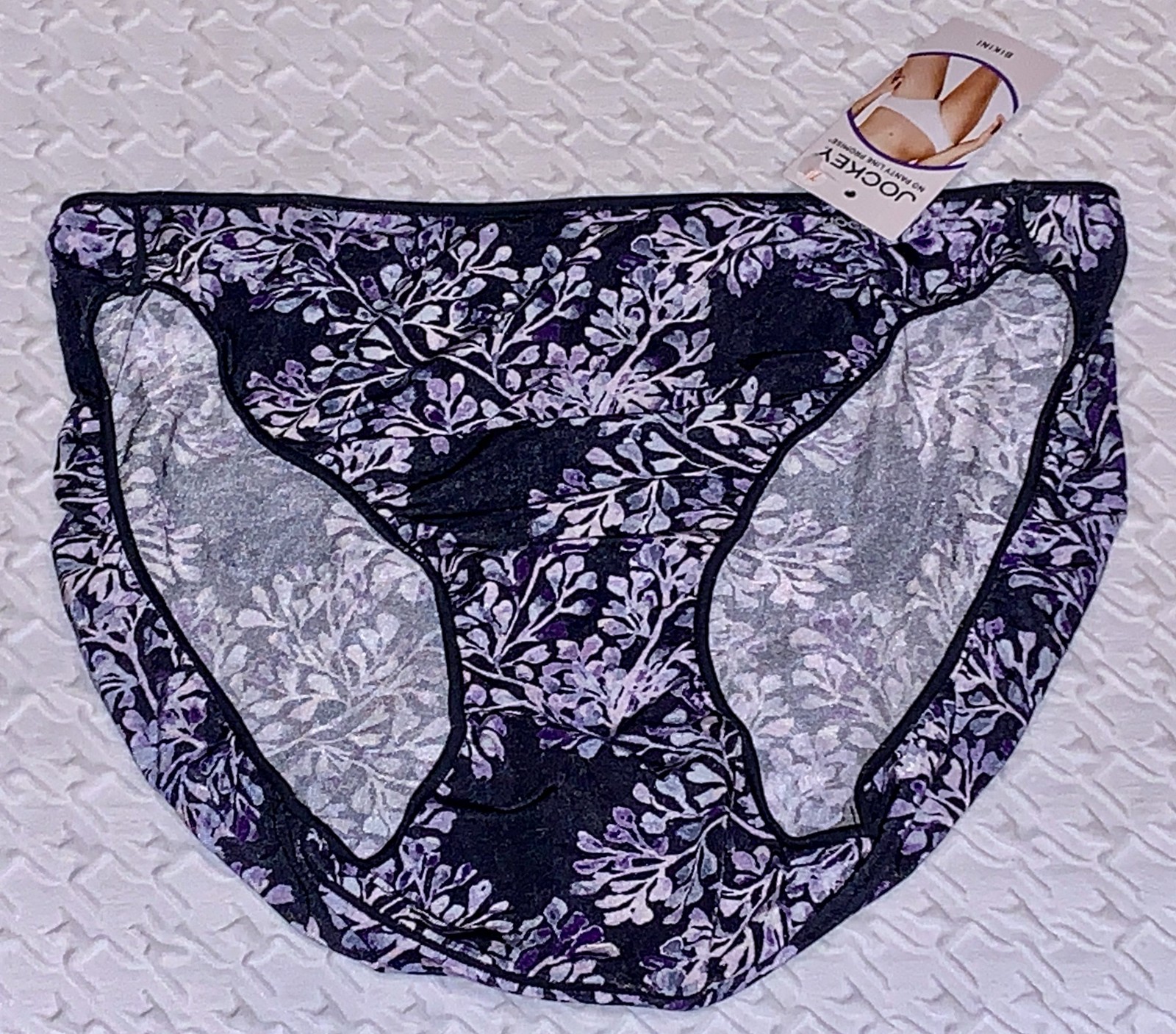 JOCKEY No Panty Line Promise Branches Navy Blue Lavender Bikini Panty Womens 7 L