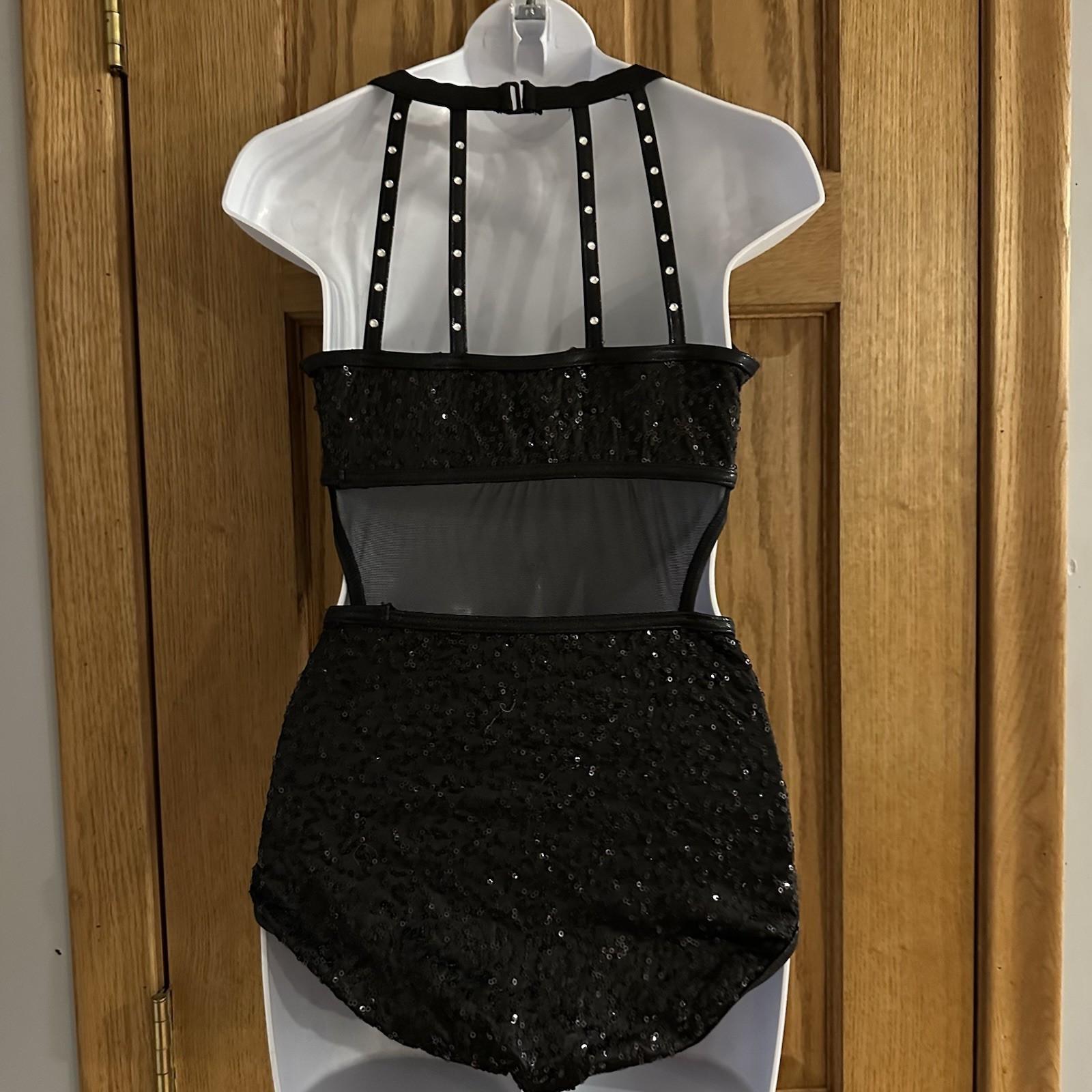 как выглядит Balera Performance Black Strappy Sequin Rhinestone Leotard Dance Costume SQ9240 фото