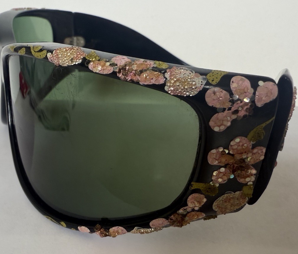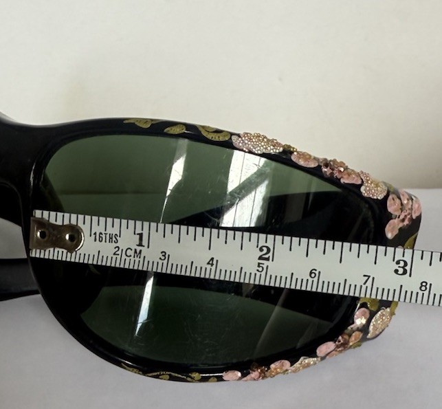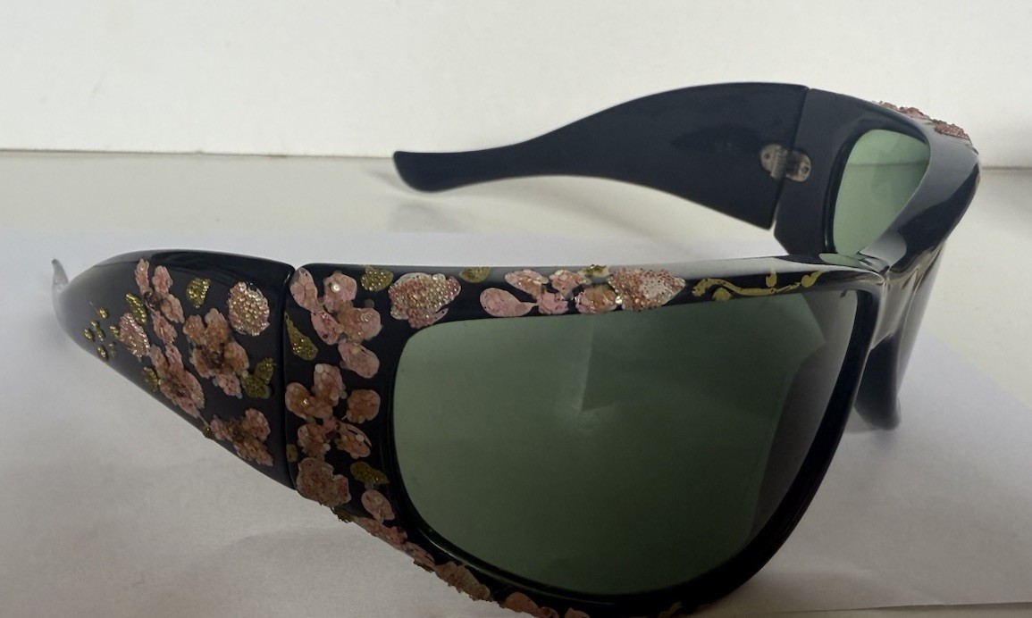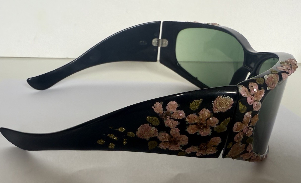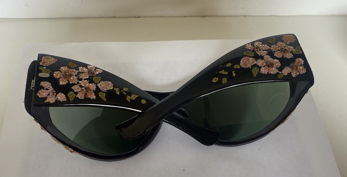 как выглядит Vtg Foster Grant Large Black Frames ,Flower Embellished Sunglasses Made in USA фото
