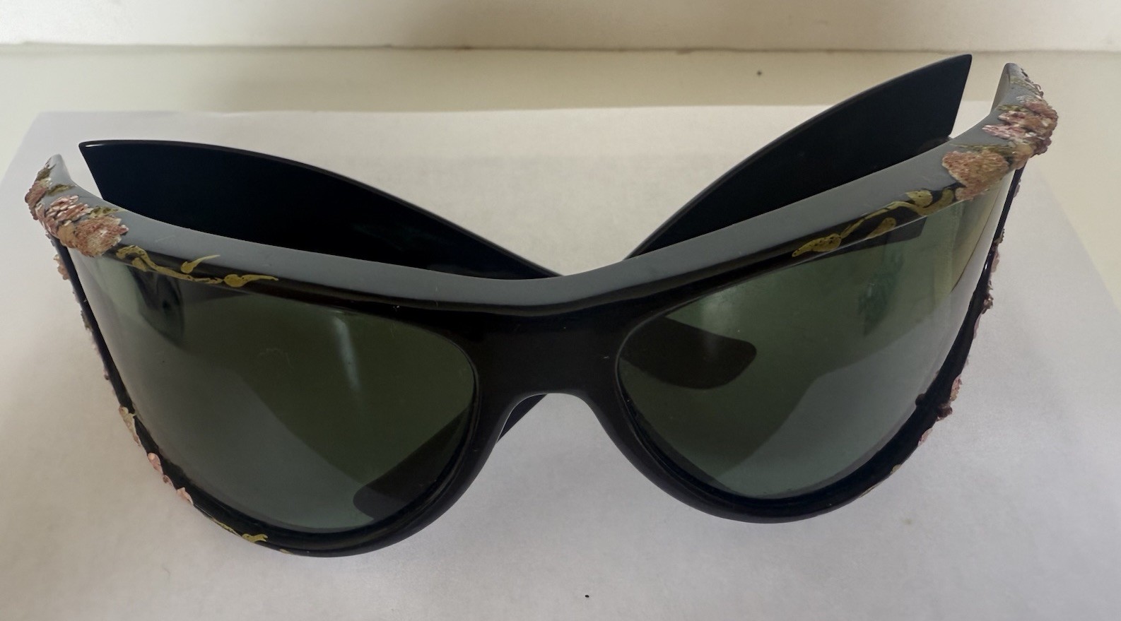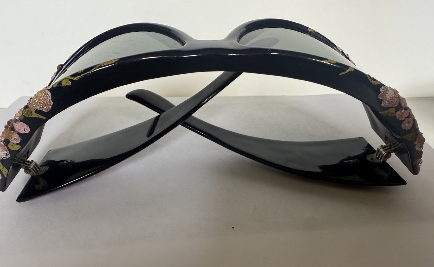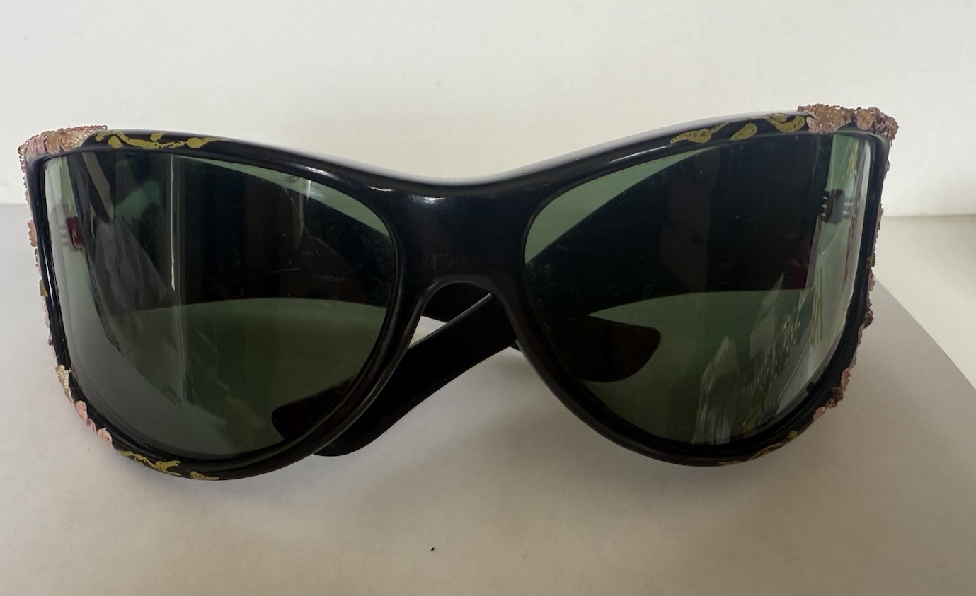 как выглядит Vtg Foster Grant Large Black Frames ,Flower Embellished Sunglasses Made in USA фото
