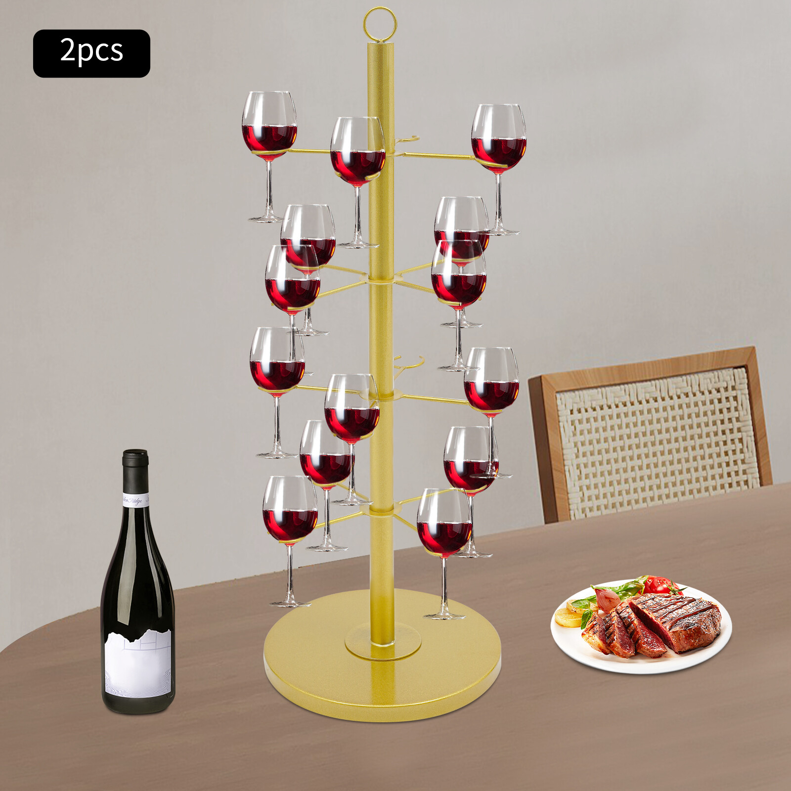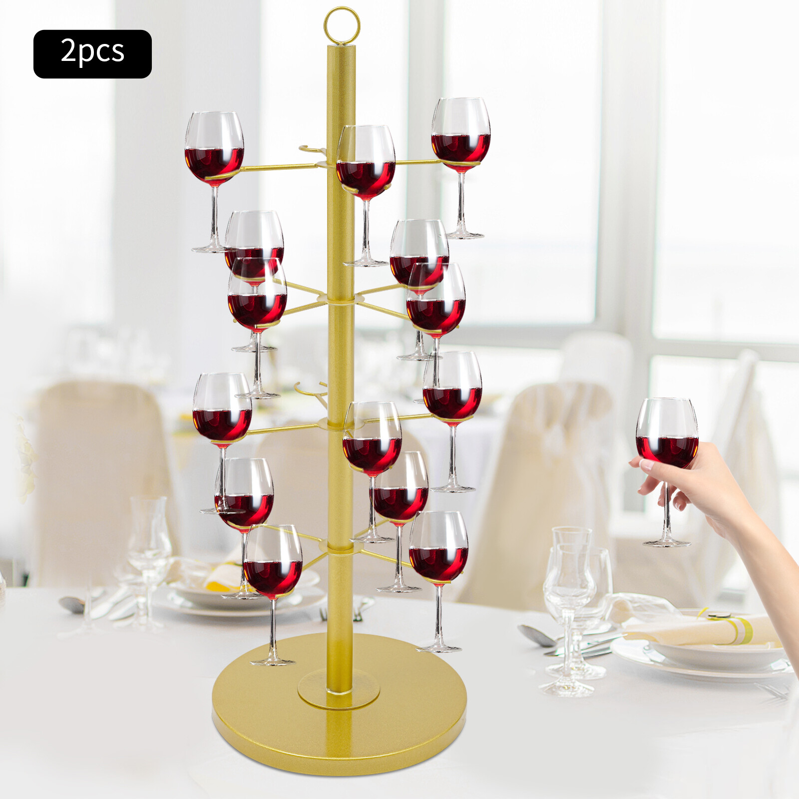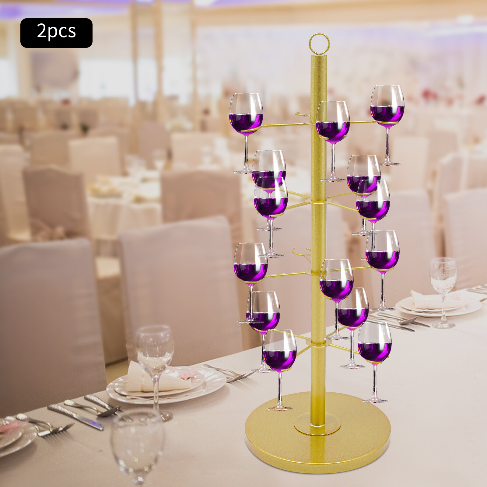 как выглядит 4 Tiers 16 Glasses Champagne Tower Metal Cocktail Wine Glass Display Tree Stand фото