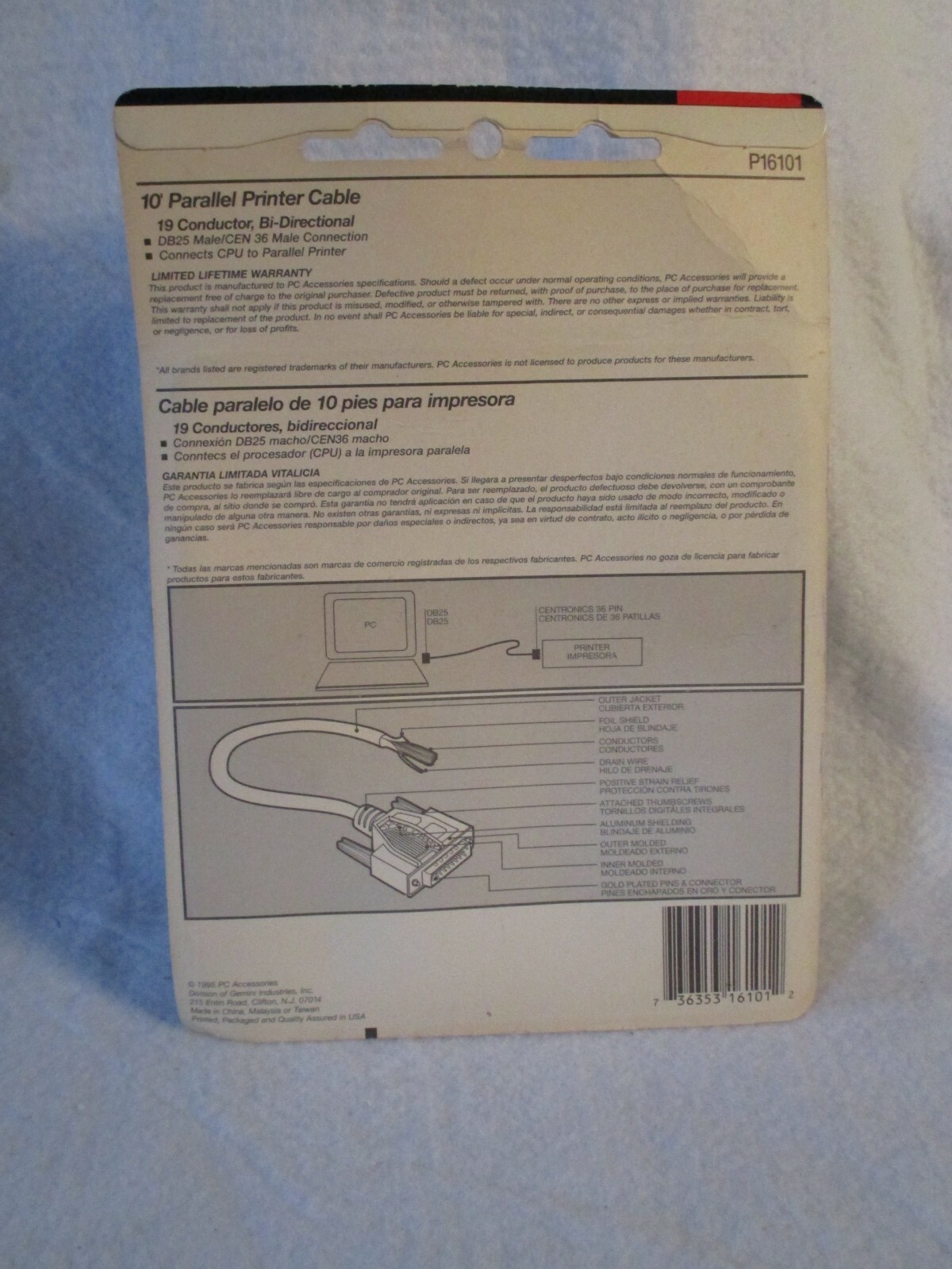 IBM Parallel Printer Cable 10 P16101 Bi Directional 10'