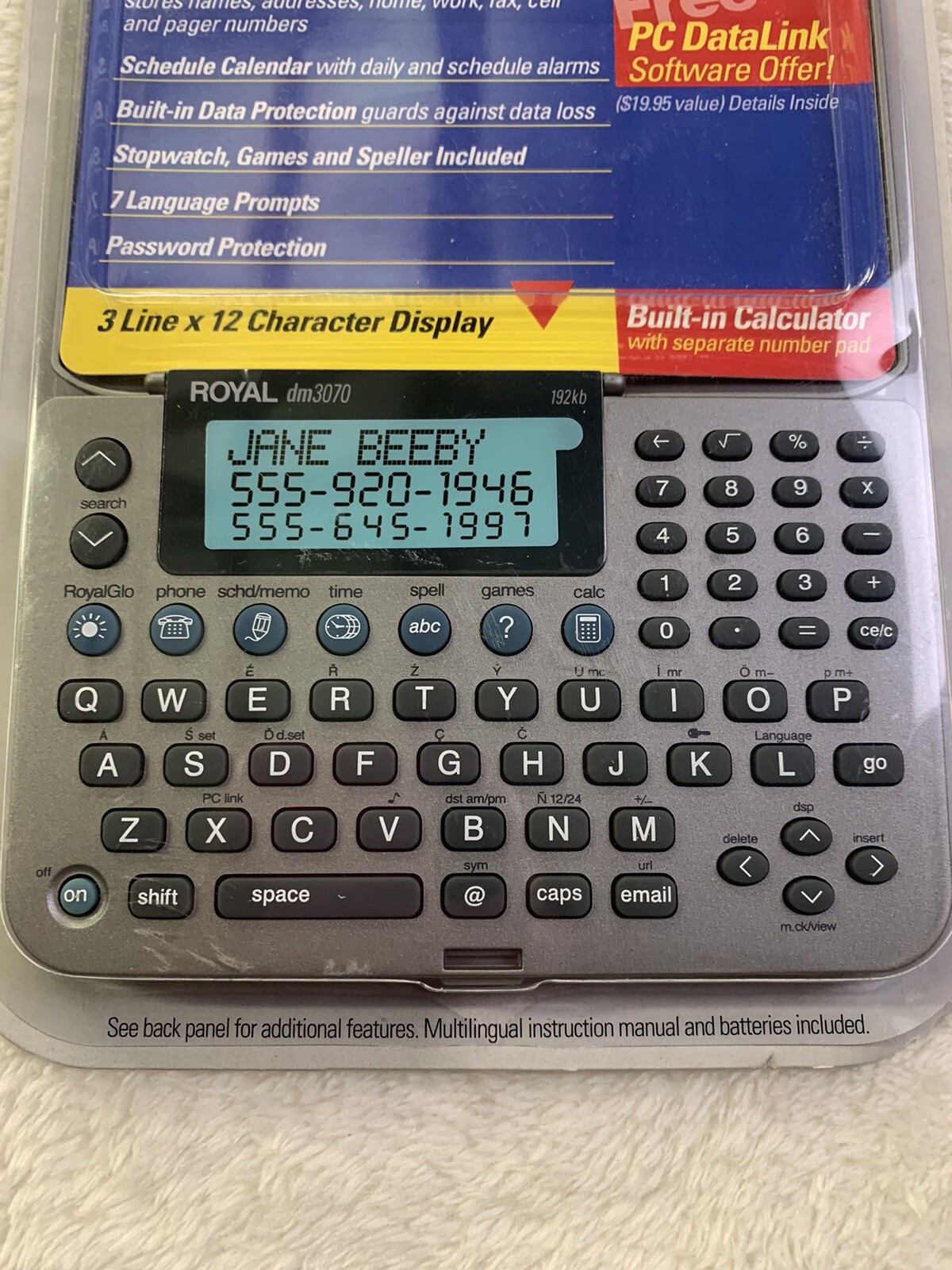 Royal Business Machines Electronic Organizer DM3070SP 192KB Directory Back Lit