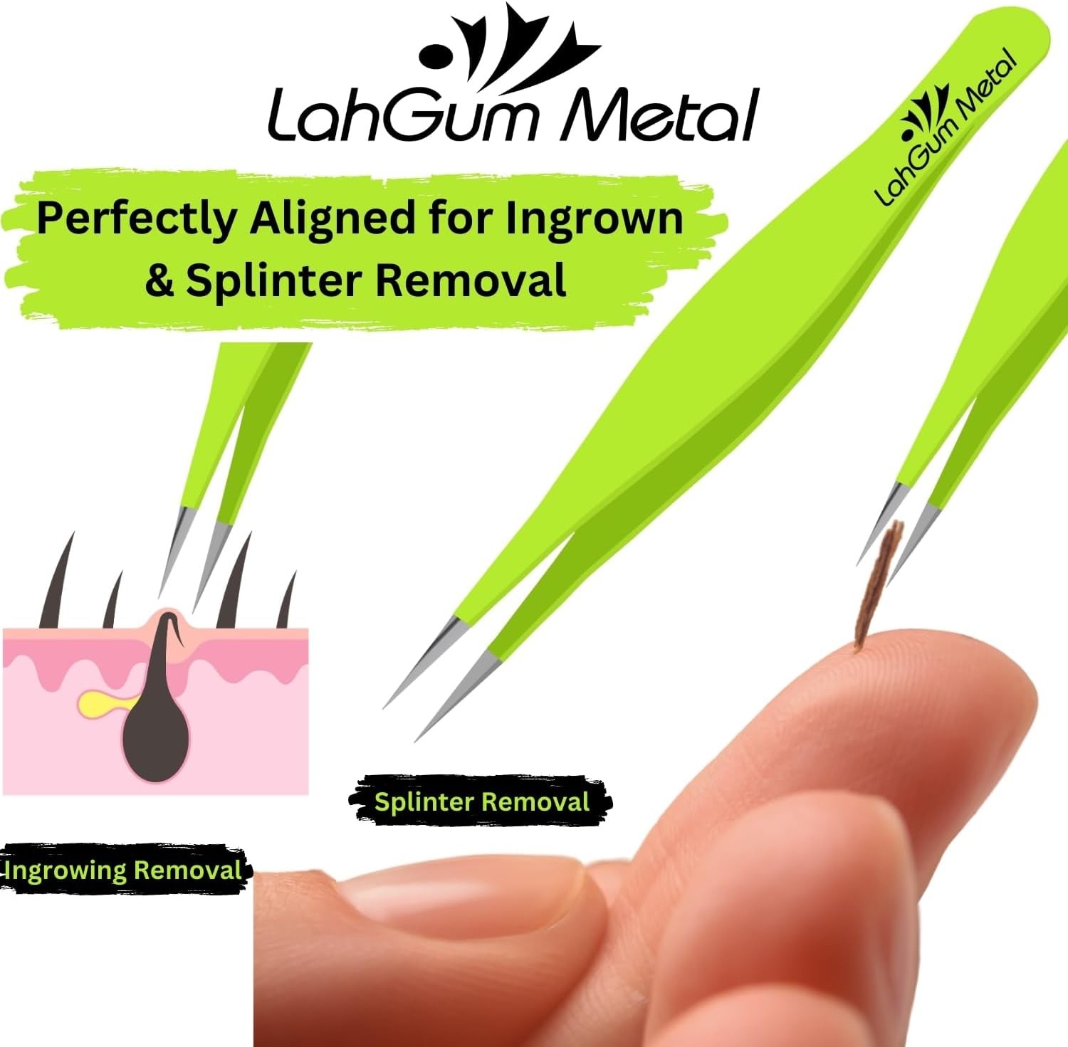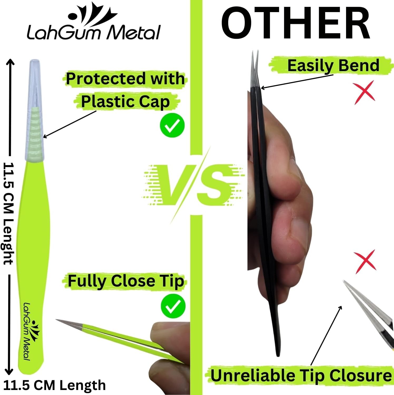 Super Sharp Pointed Tweezers Precision Fine Point Tip Ingrown Green Color
