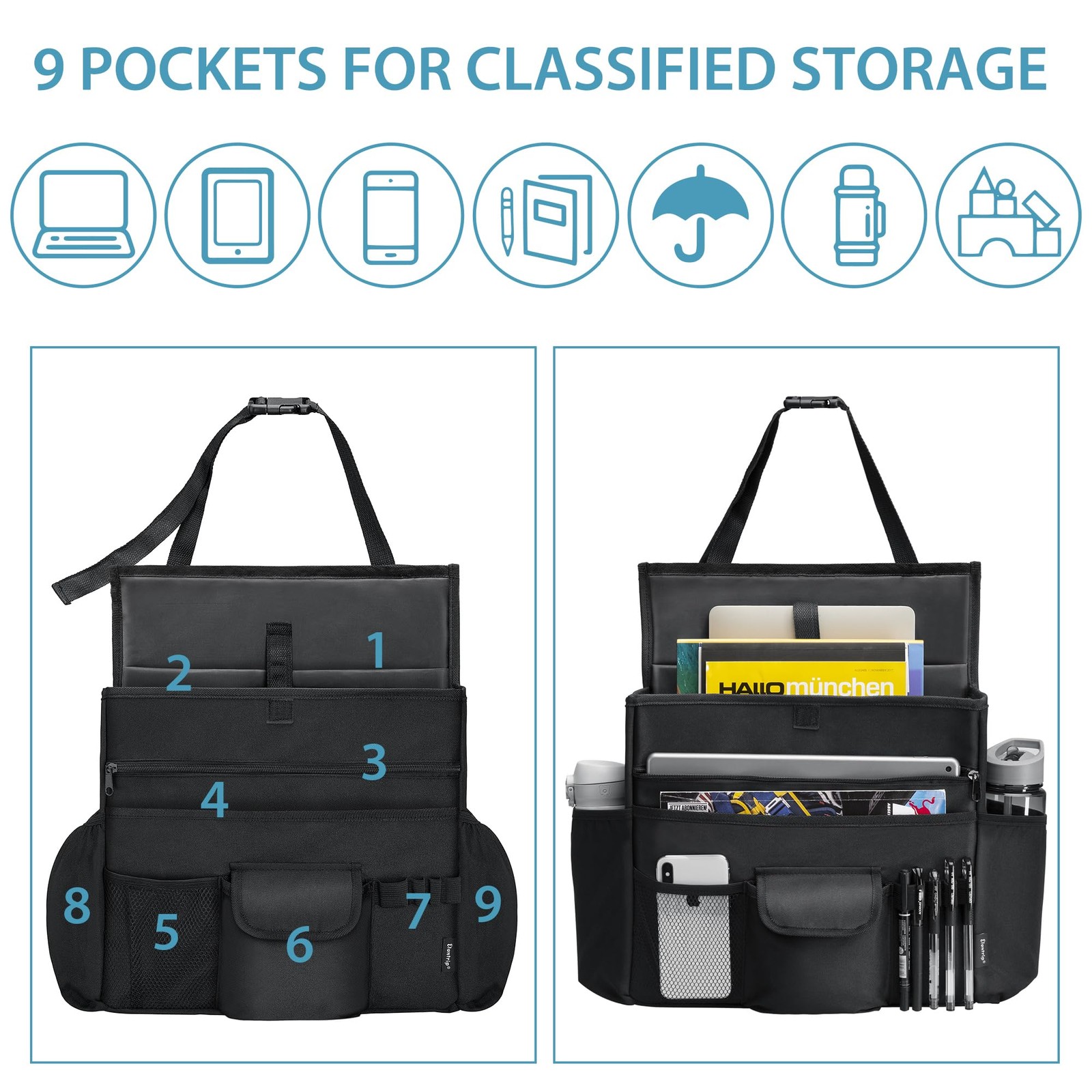 Elantrip Car Front Seat Organizer, Back Seat Storage with Adjustable Straps Truc