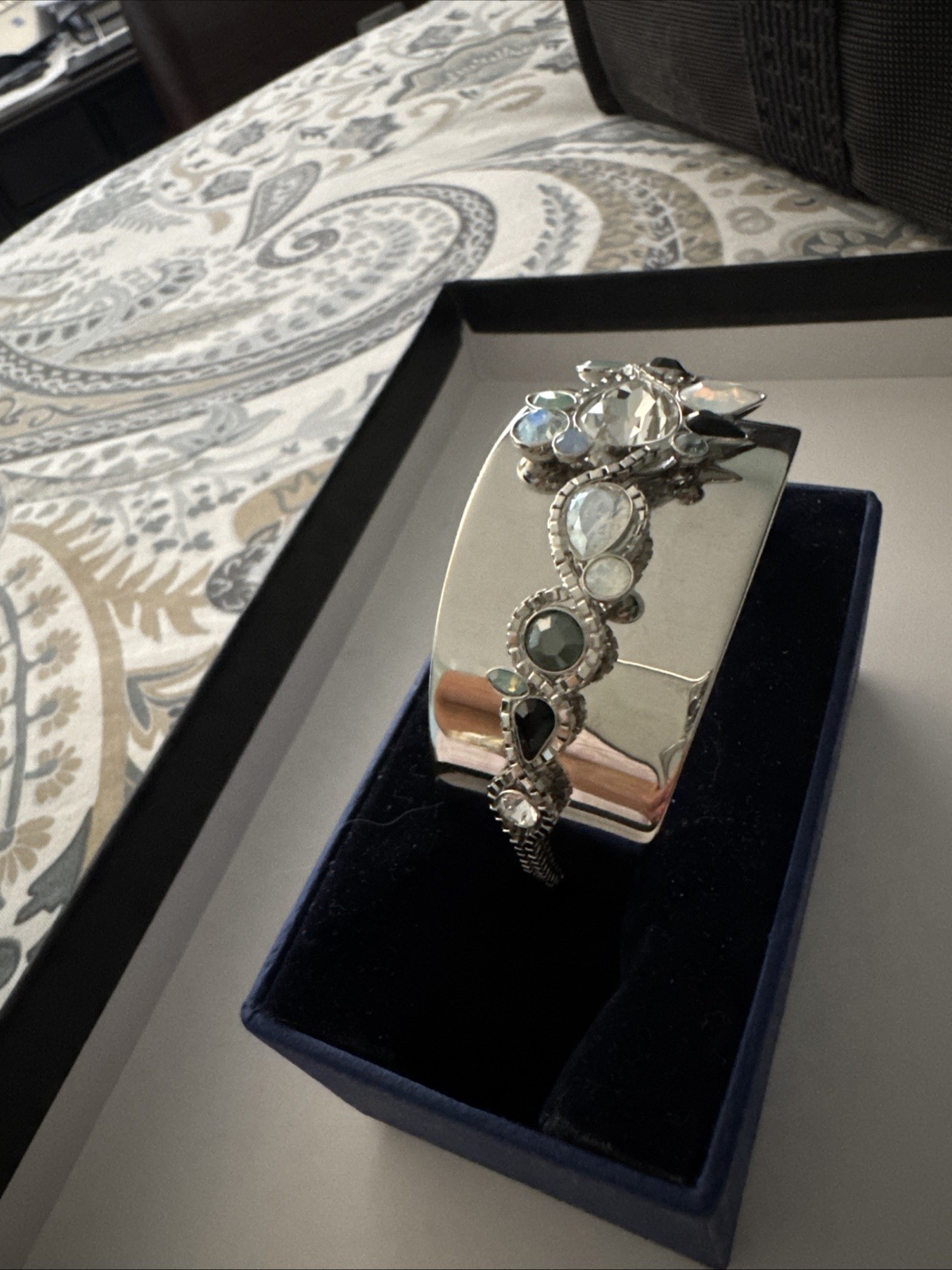 как выглядит Swarovski Multiple Crystals Cuff Silver Tone Bangle Bracelet фото