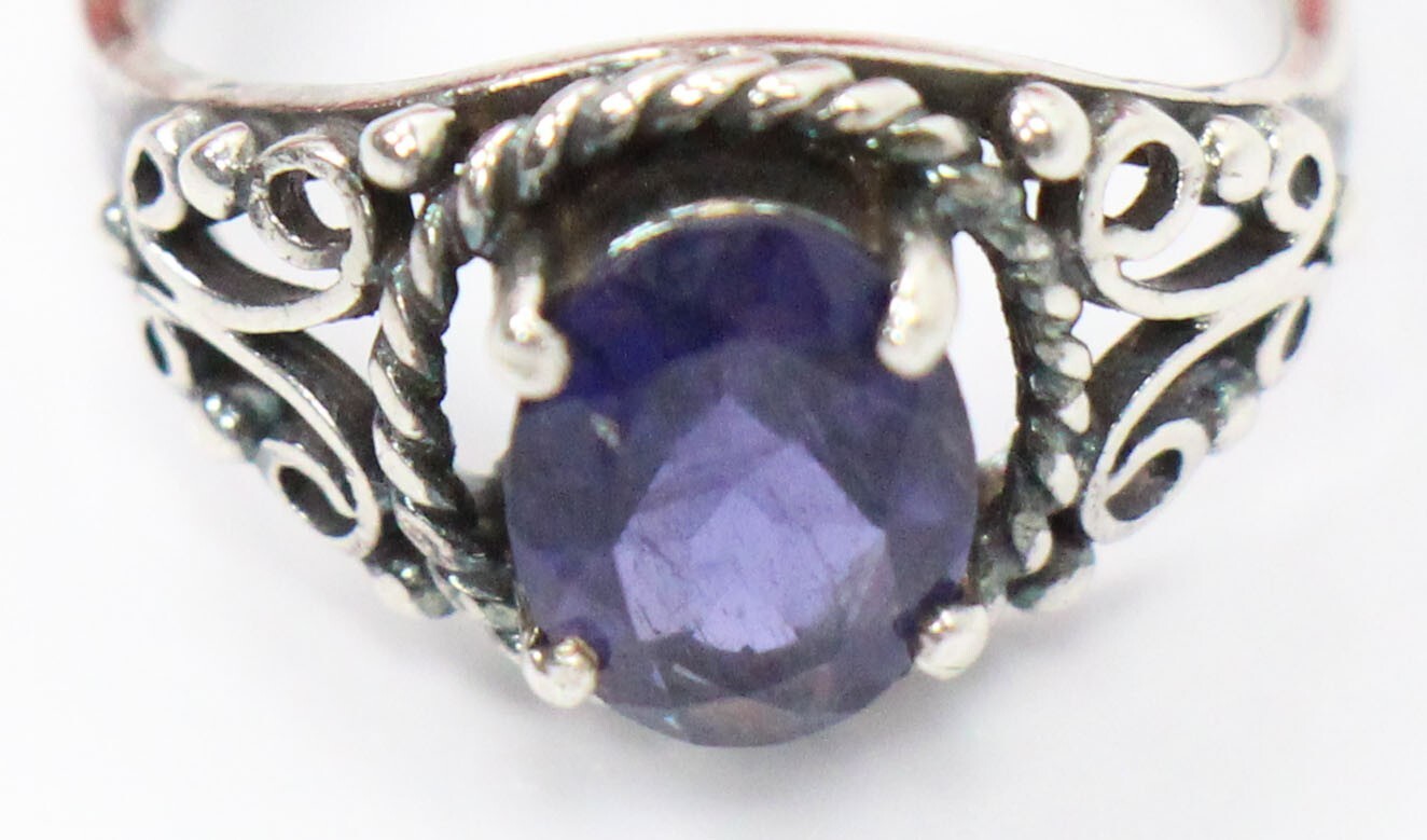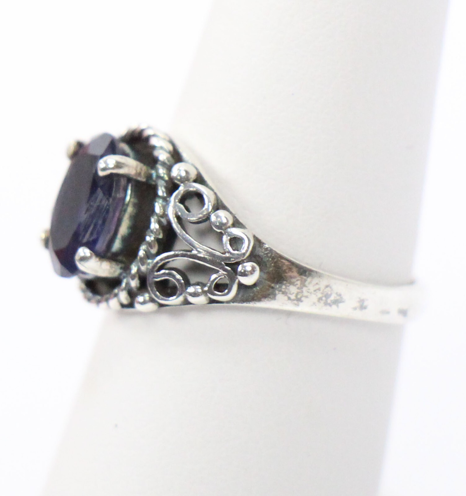 как выглядит Vintage .925 Sterling Silver Amethyst Ring 5 3/4 Filigree Oval Purple Ladies фото