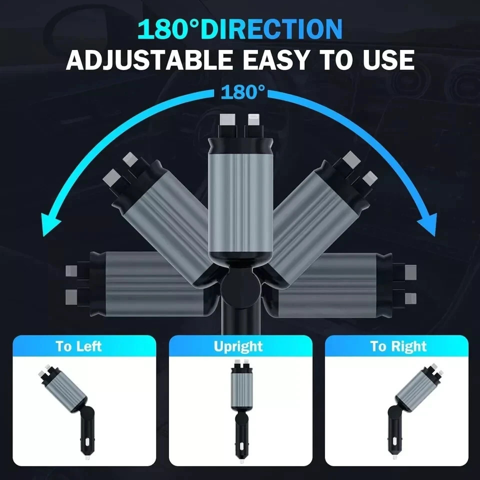 4 in 1 Retractable Fast Car Charger with Starlight 66W USB C for iPhone Android