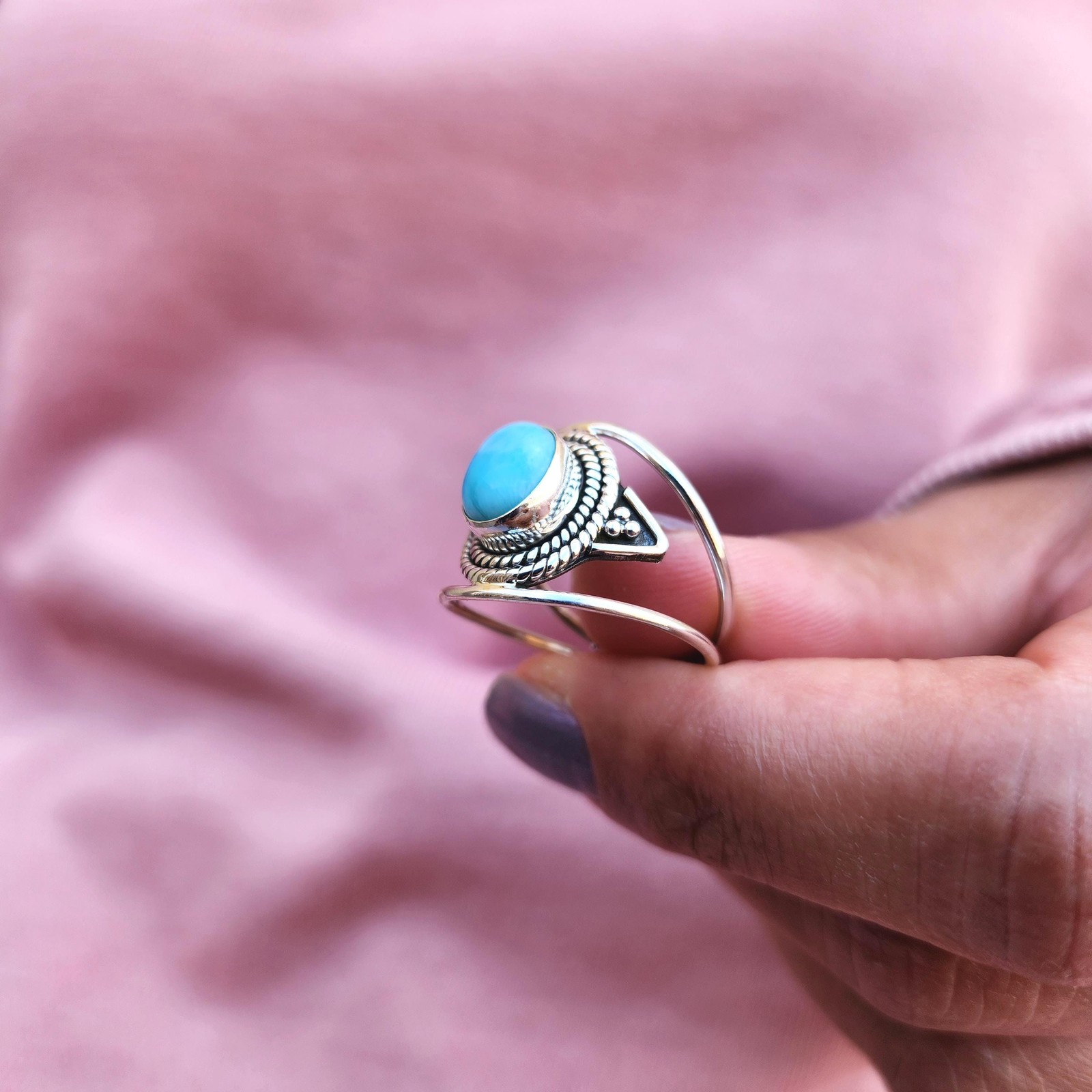 как выглядит Genuine Larimar Ring 925 Sterling Silver Statement Ring Hand Made Ships From USA фото