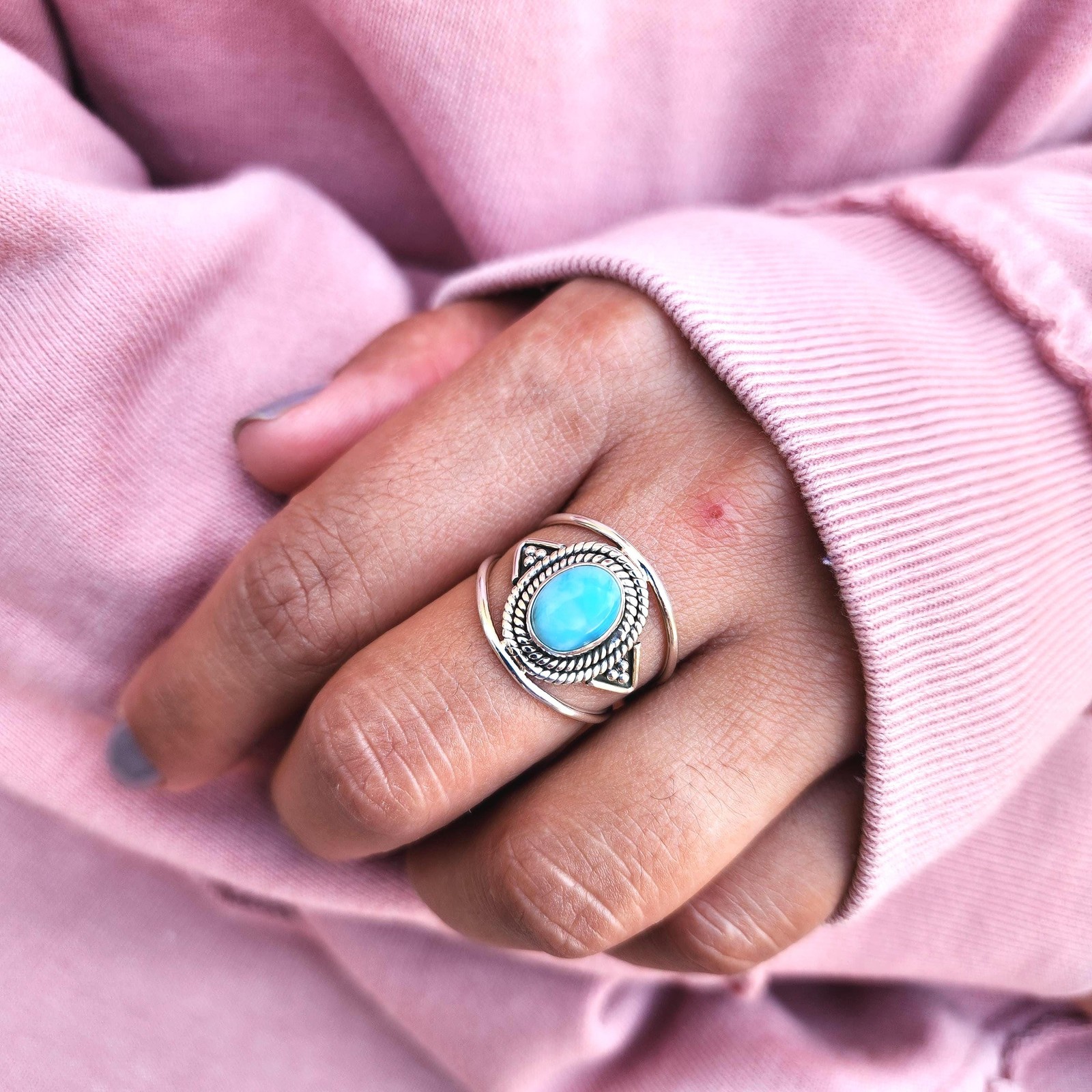 Genuine Larimar Ring 925 Sterling Silver Statement Ring Hand Made Ships From USA