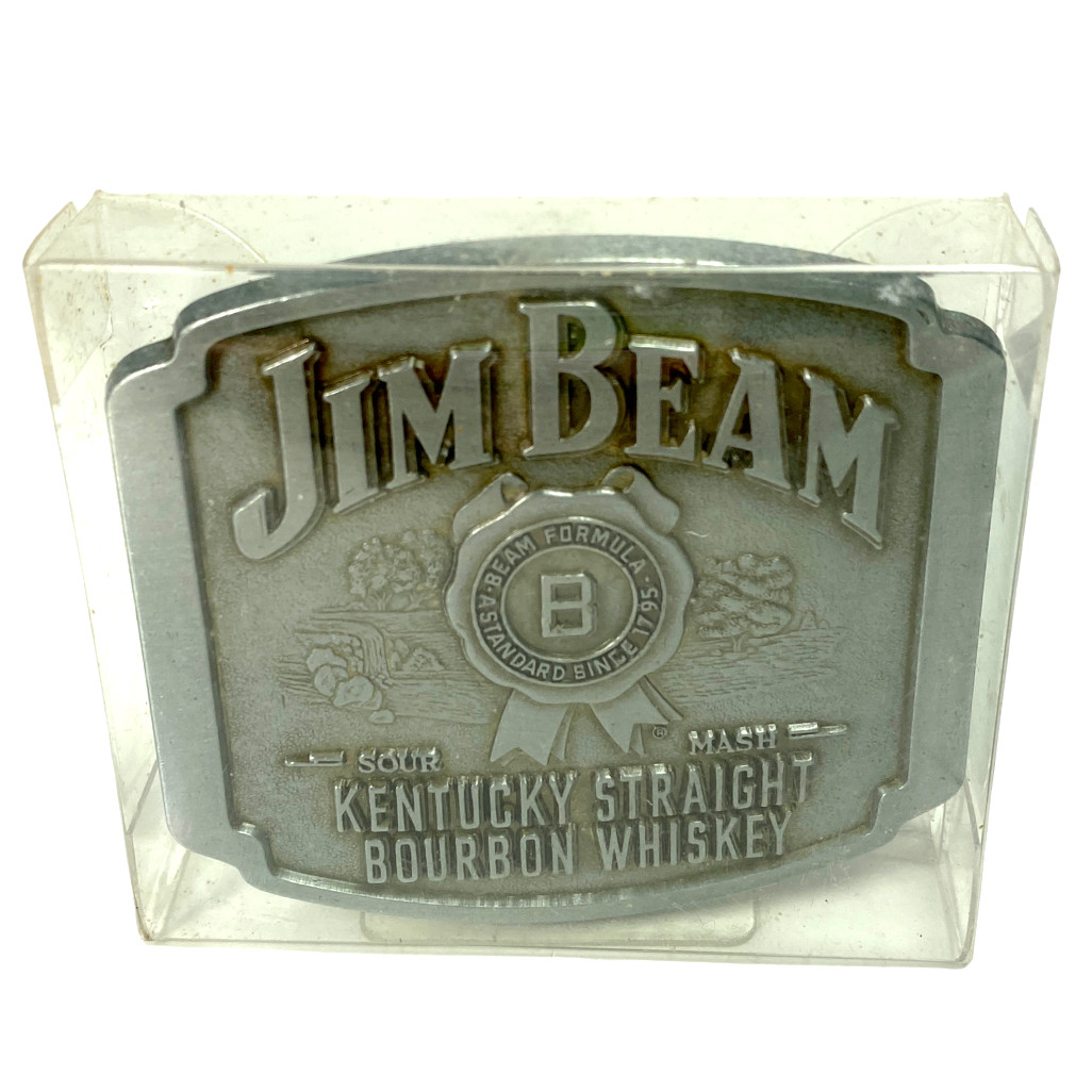 Jim Beam Bourbon Pewter Gray Metal Square Belt Buckle 3 X 2.75 - NEW