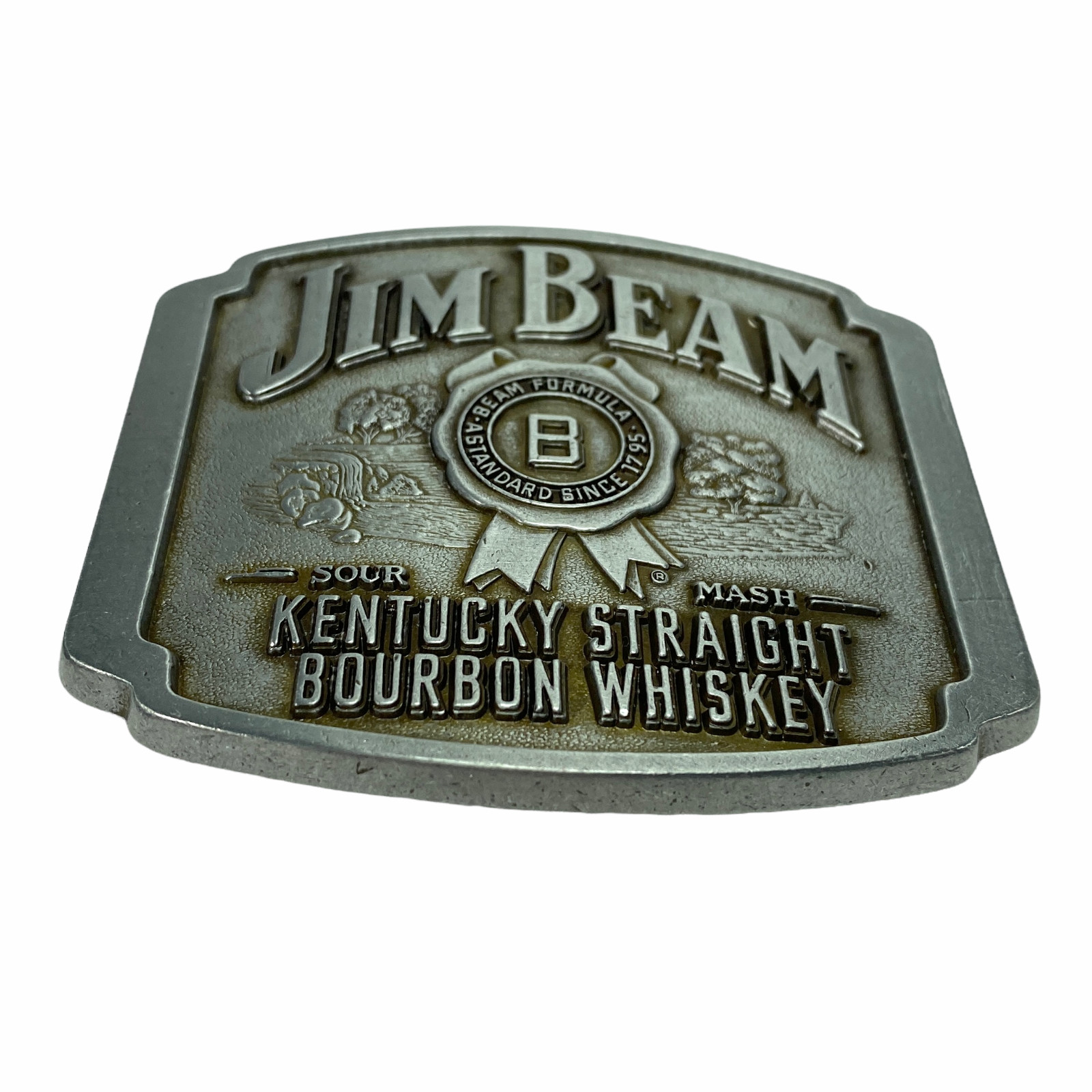 как выглядит Jim Beam Bourbon Pewter Gray Metal Square Belt Buckle 3" X 2.75" - NEW фото