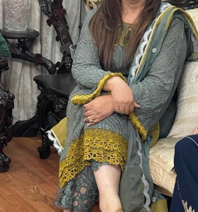 как выглядит Pakistani boutique style Gray and Mustard suit фото