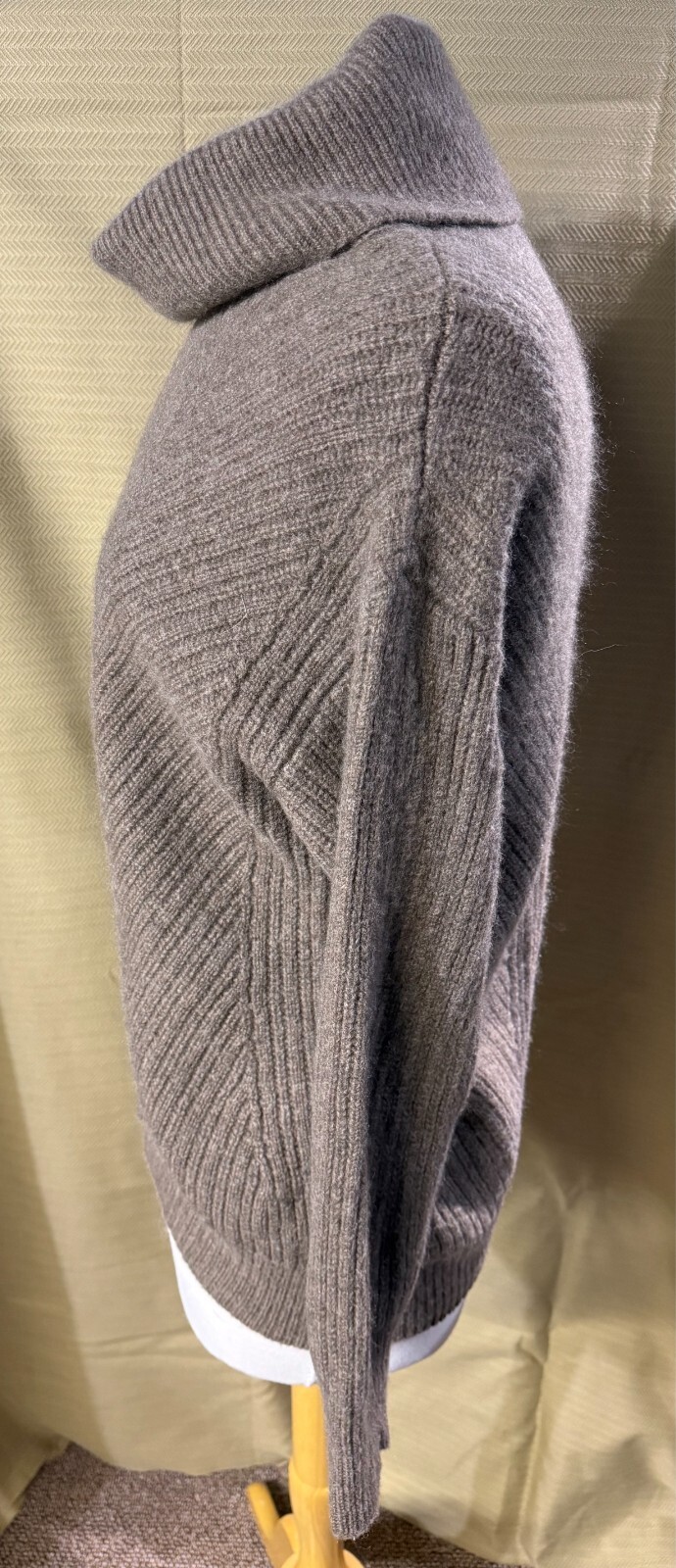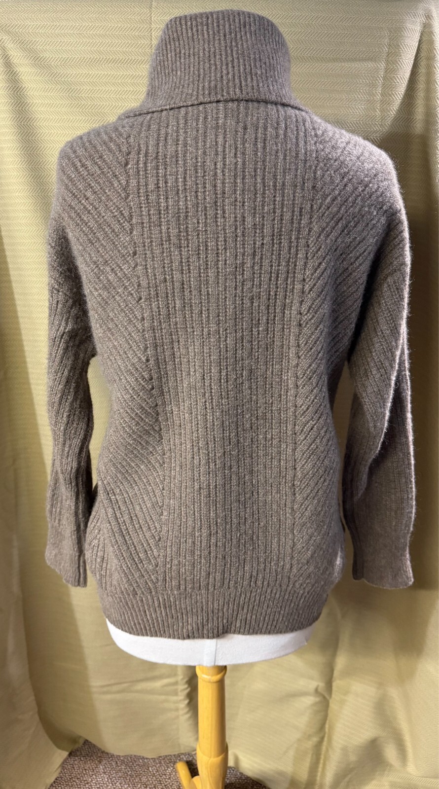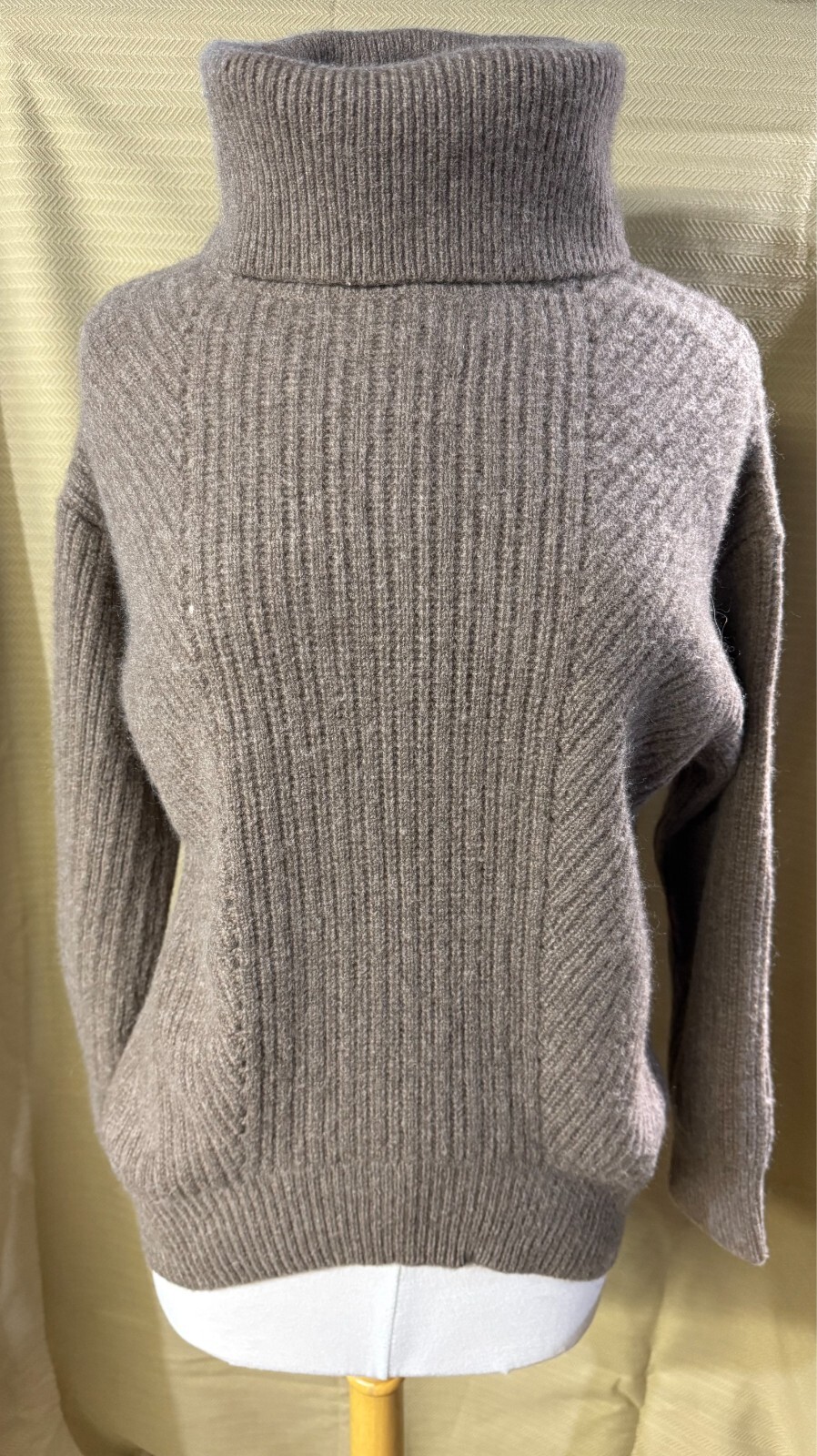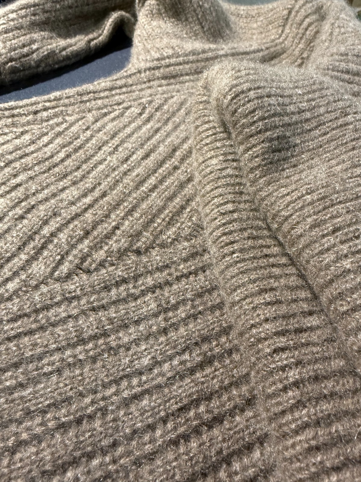 как выглядит Magaschoni 100 Cashmere Ribbed Turtleneck Sweater in Heathered Truffle Size L фото