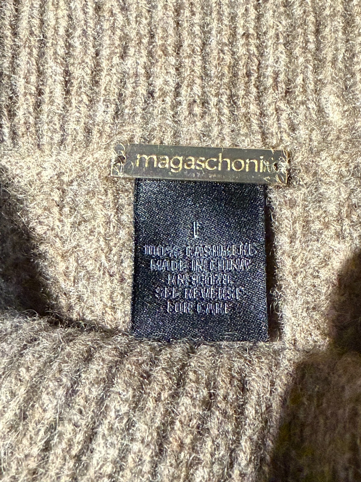 Magaschoni 100 Cashmere Ribbed Turtleneck Sweater in Heathered Truffle Size L