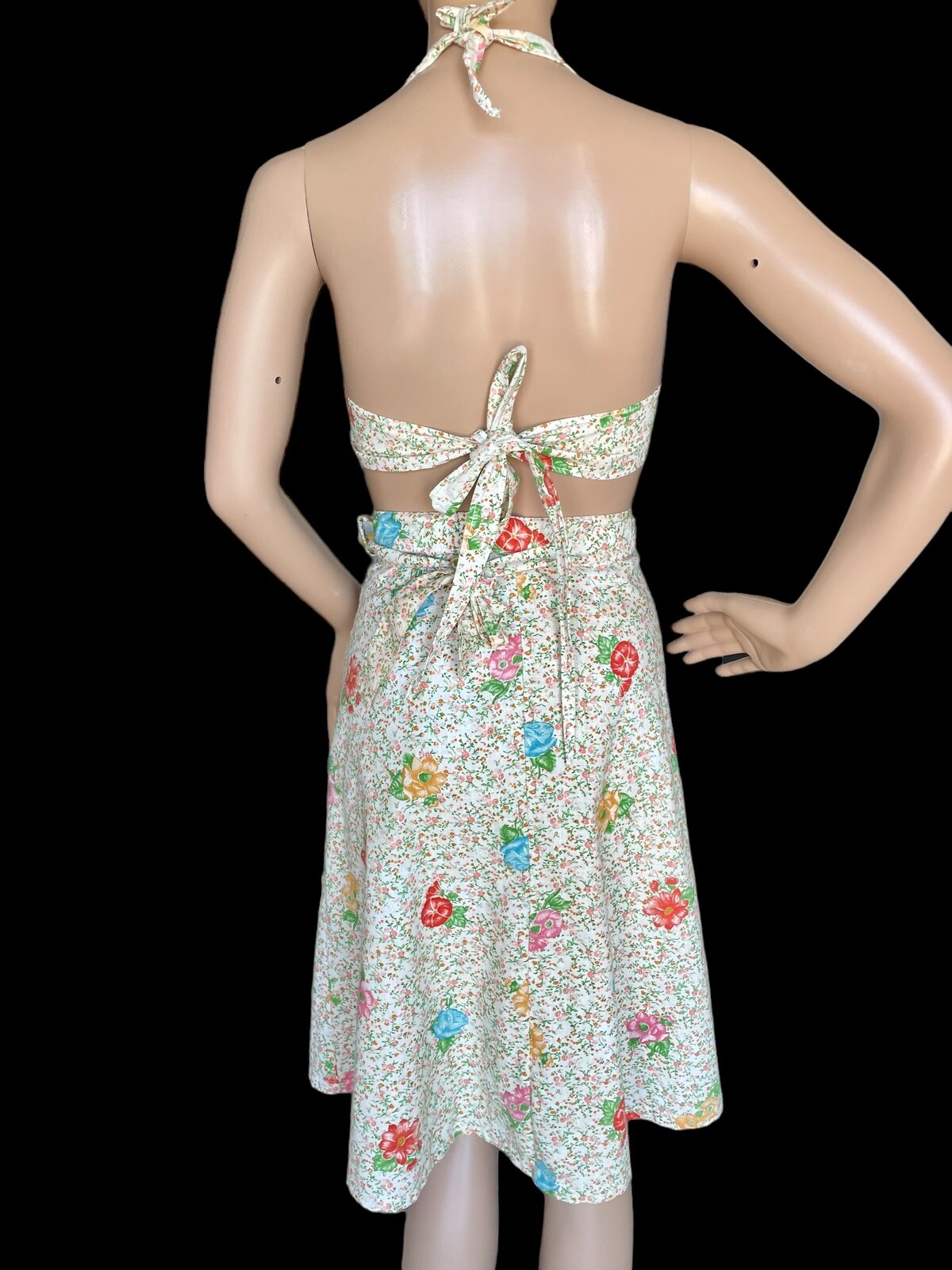 как выглядит Vintage 70s Handmade Set Floral Crop Halter Top Full Wrap Skirt XS-S фото