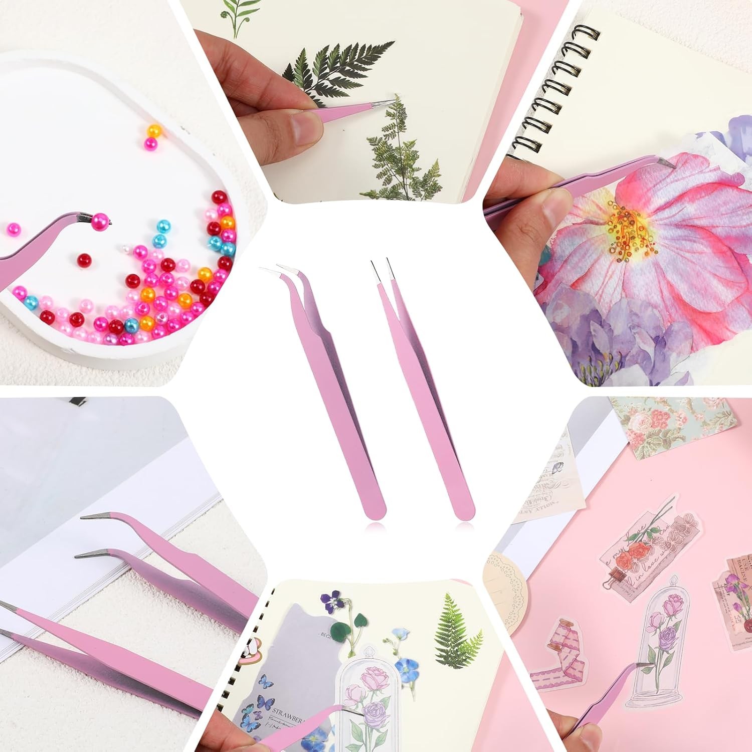 Tweezers for Crafting, 2PCS Sticker Pink Craft Small,