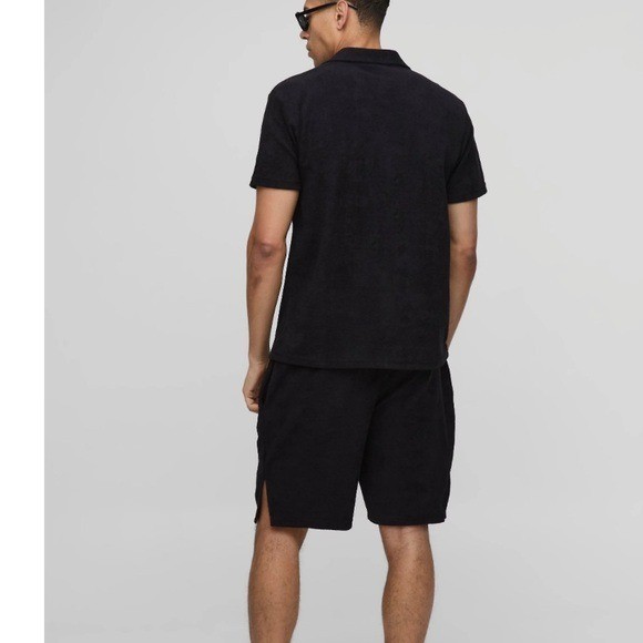 как выглядит Boohoo Man Regular Fit Towelling Shirt Loose Short Set 2-Piece Outfit Black XL фото