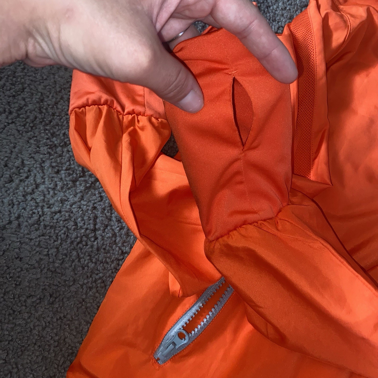 как выглядит Zyia Active Womens Orange Mesh Lined Full Zip Windbreaker Thumbhole Sleeves S фото