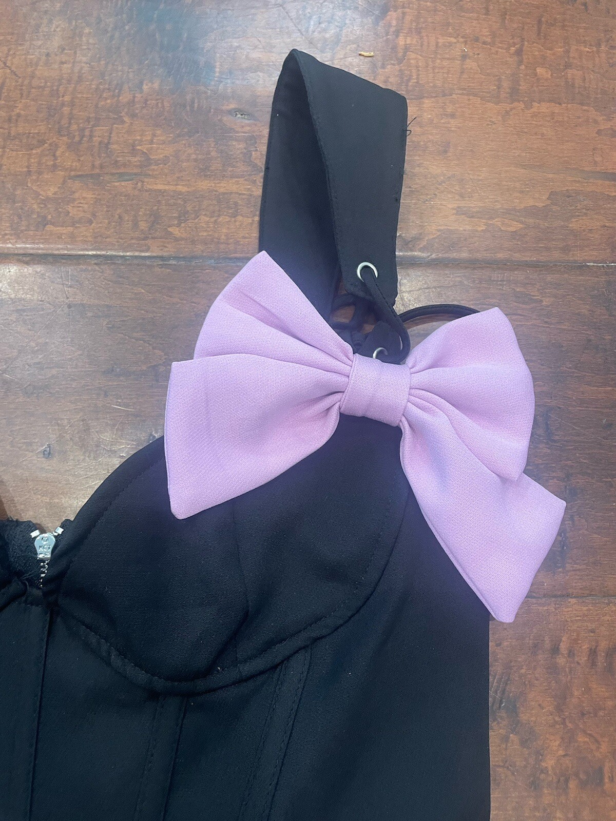New Pretty little thing Jr Sz 2 Black w/Pink Bows Boned Corset Bustier Crop Top