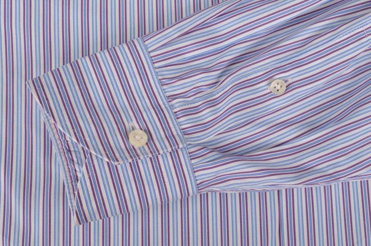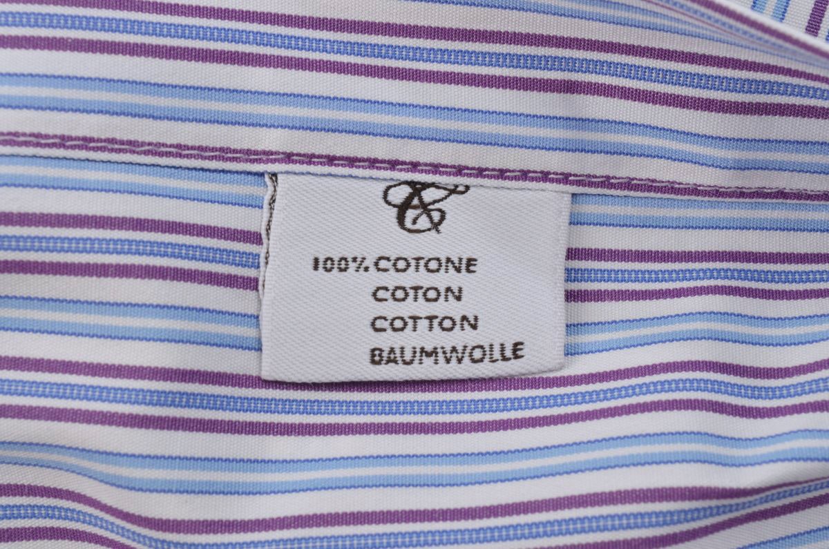 как выглядит CANALI Current 1934 White Purple Striped 100 Cotton Luxury Dress Shirt - 16.5 фото