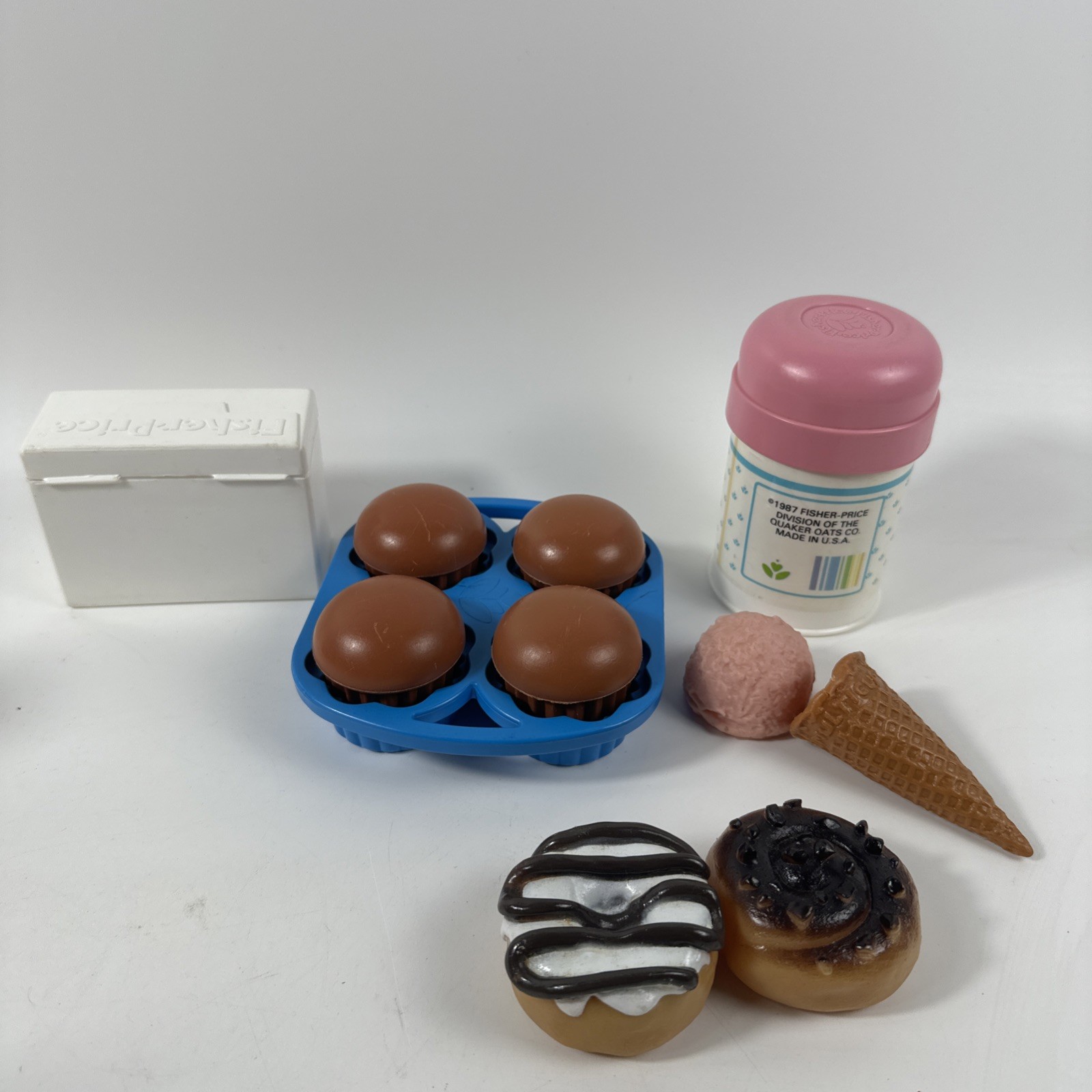 1987 Vintage Fisher Price Fun Food Party Time Dessert Dounuts Ice Cream Muffins