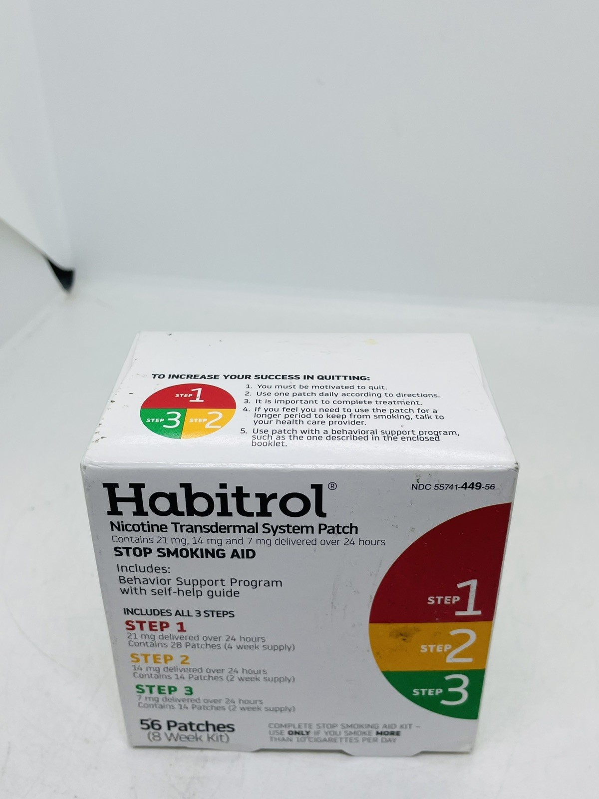 NEW HABITROL STEP 1 2 3 NICOTINE STEP DOWN PATCH KIT 56 PATCHES 21MG 14MG 7MG