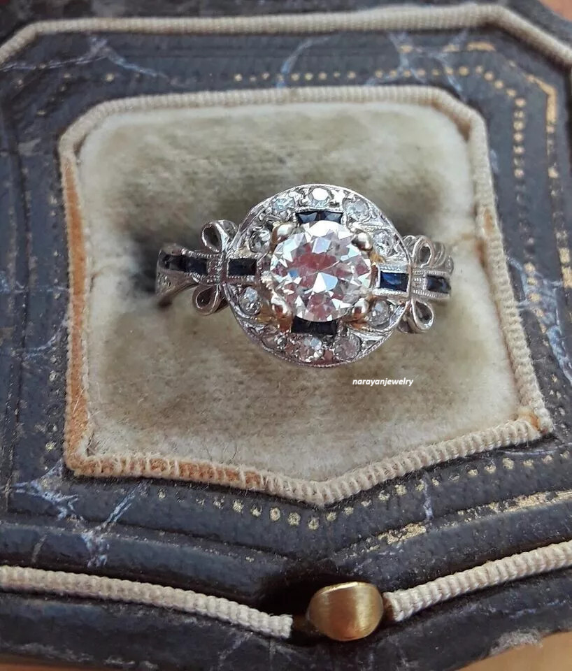 Art Deco 1.50 CT White Round cut CZ Sapphire Antique Wedding 925 Silver Ring