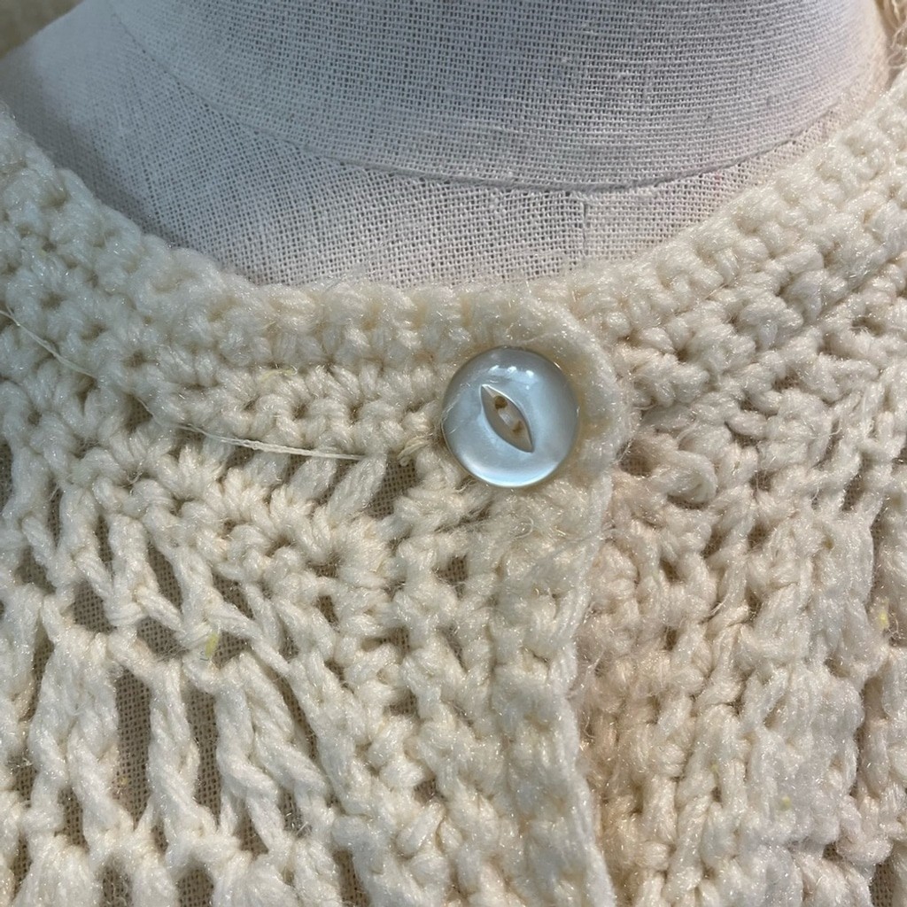 как выглядит Vintage handmade women s loose knit cape with buttons and hand openings EUC фото