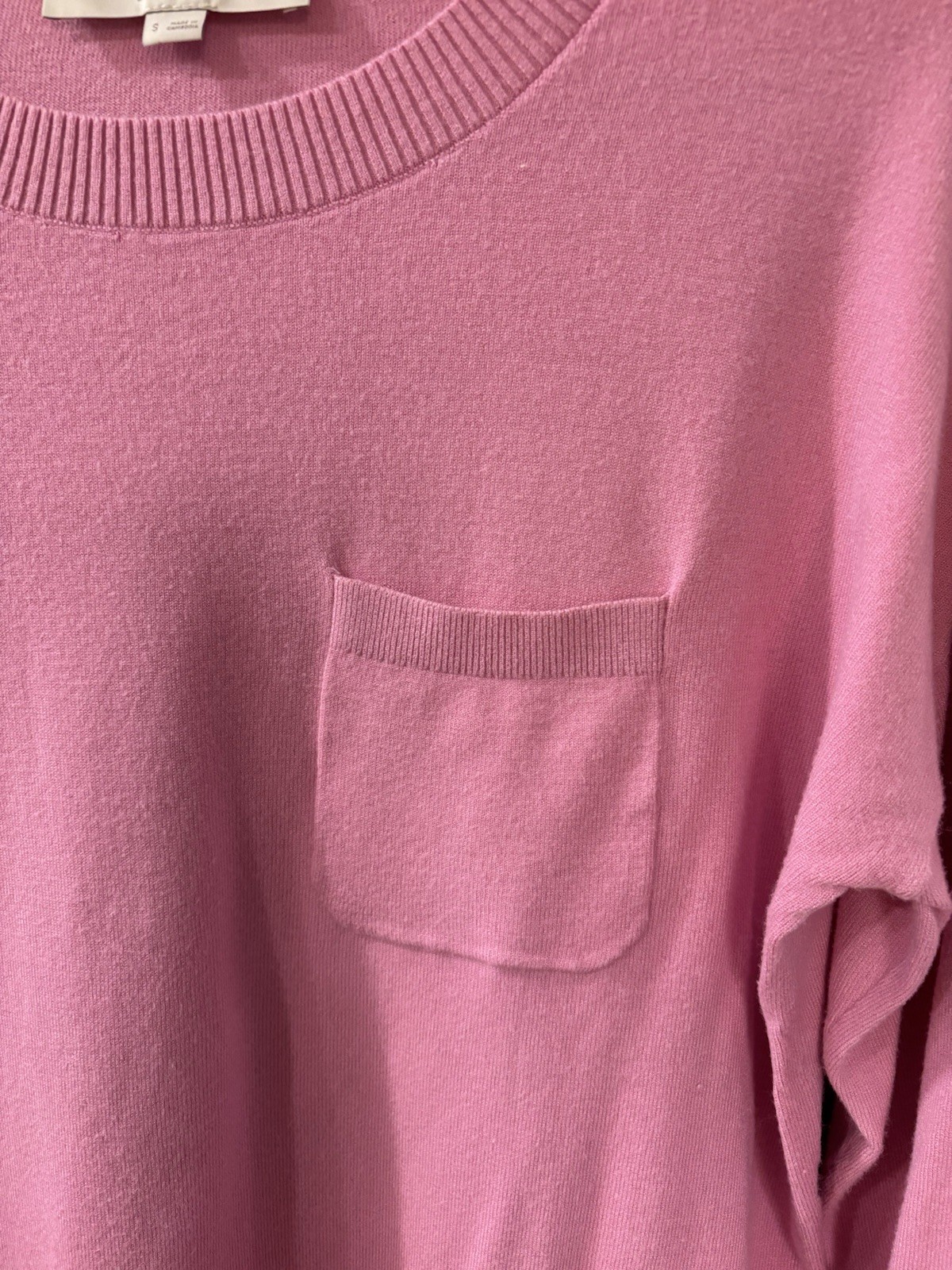 как выглядит LOFT Pink Crew Neck Cotton Stretch 3/4 Sleeve Split Hem Sweater Pocket Small фото