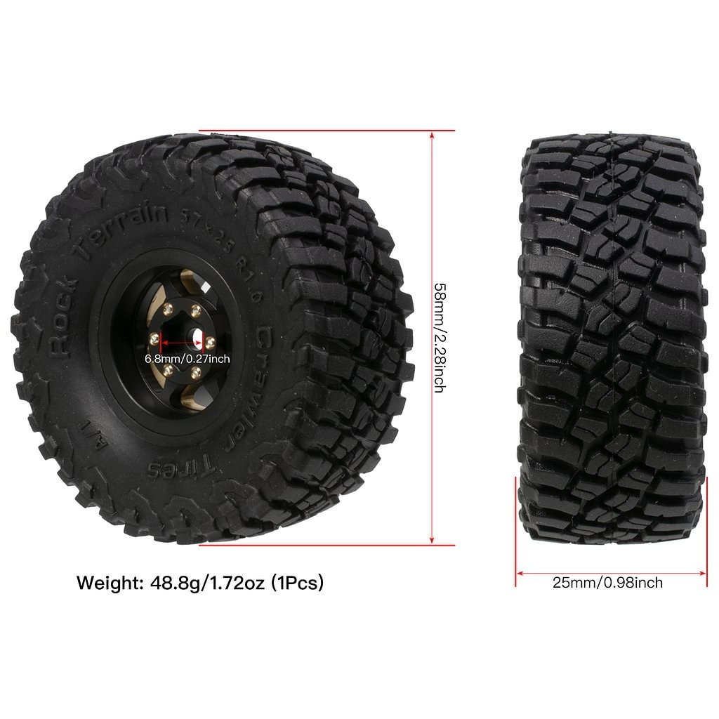 1.0 Brass Rubber Beadlock Wheels Tires for 1/18 TRX4M 1/24 Axial SCX24 RC Parts
