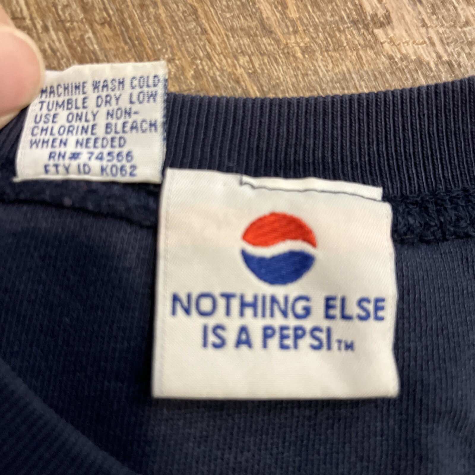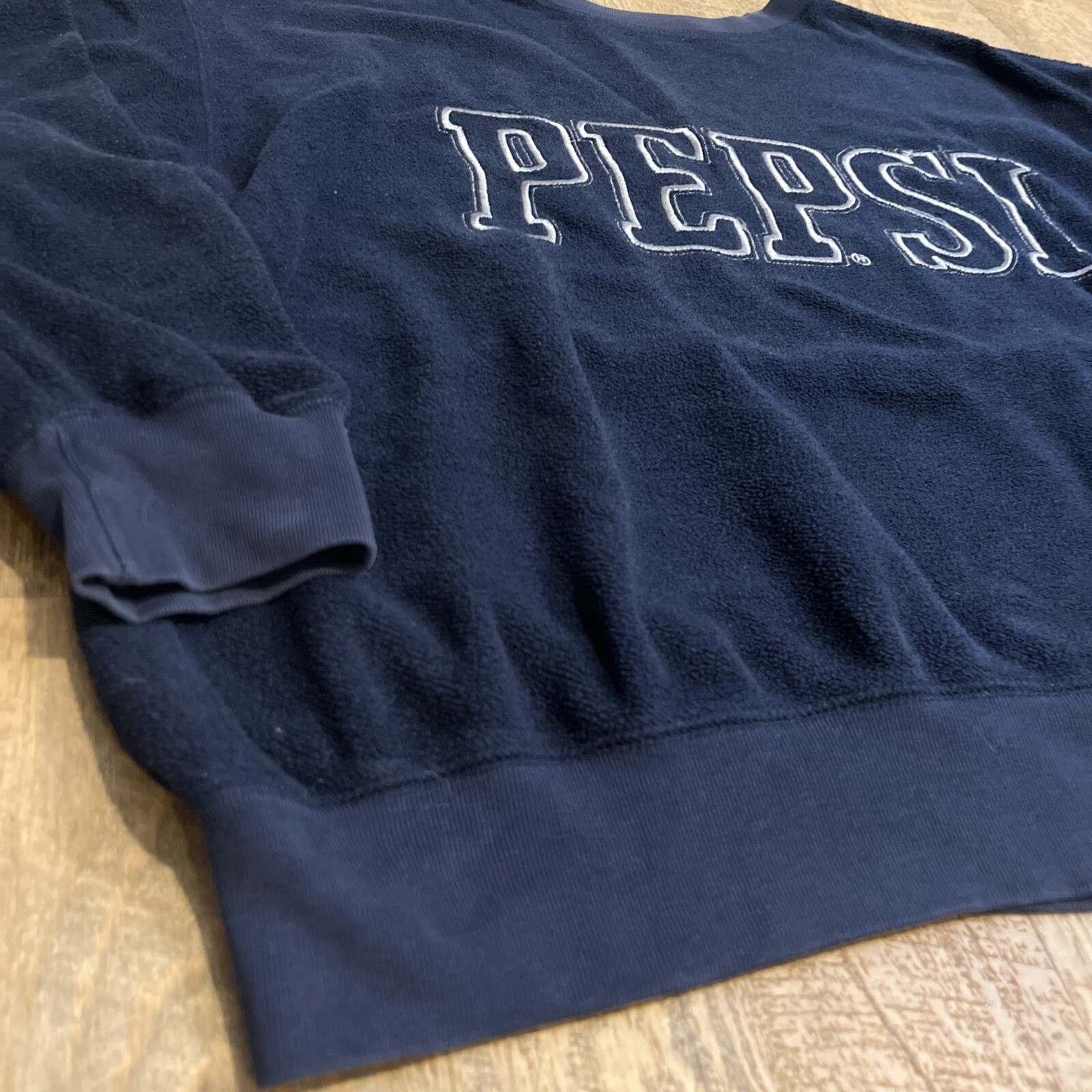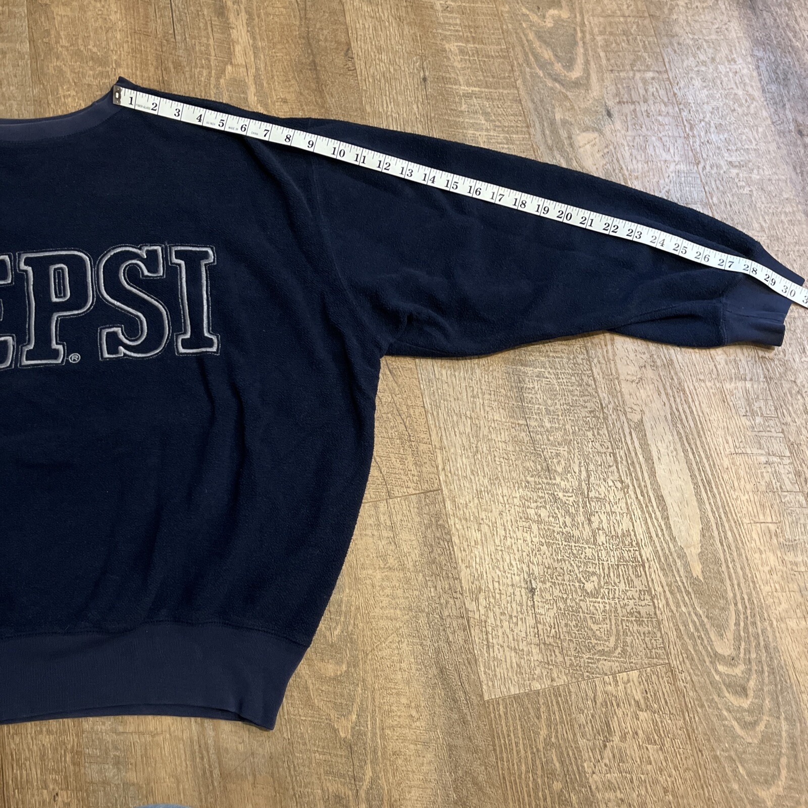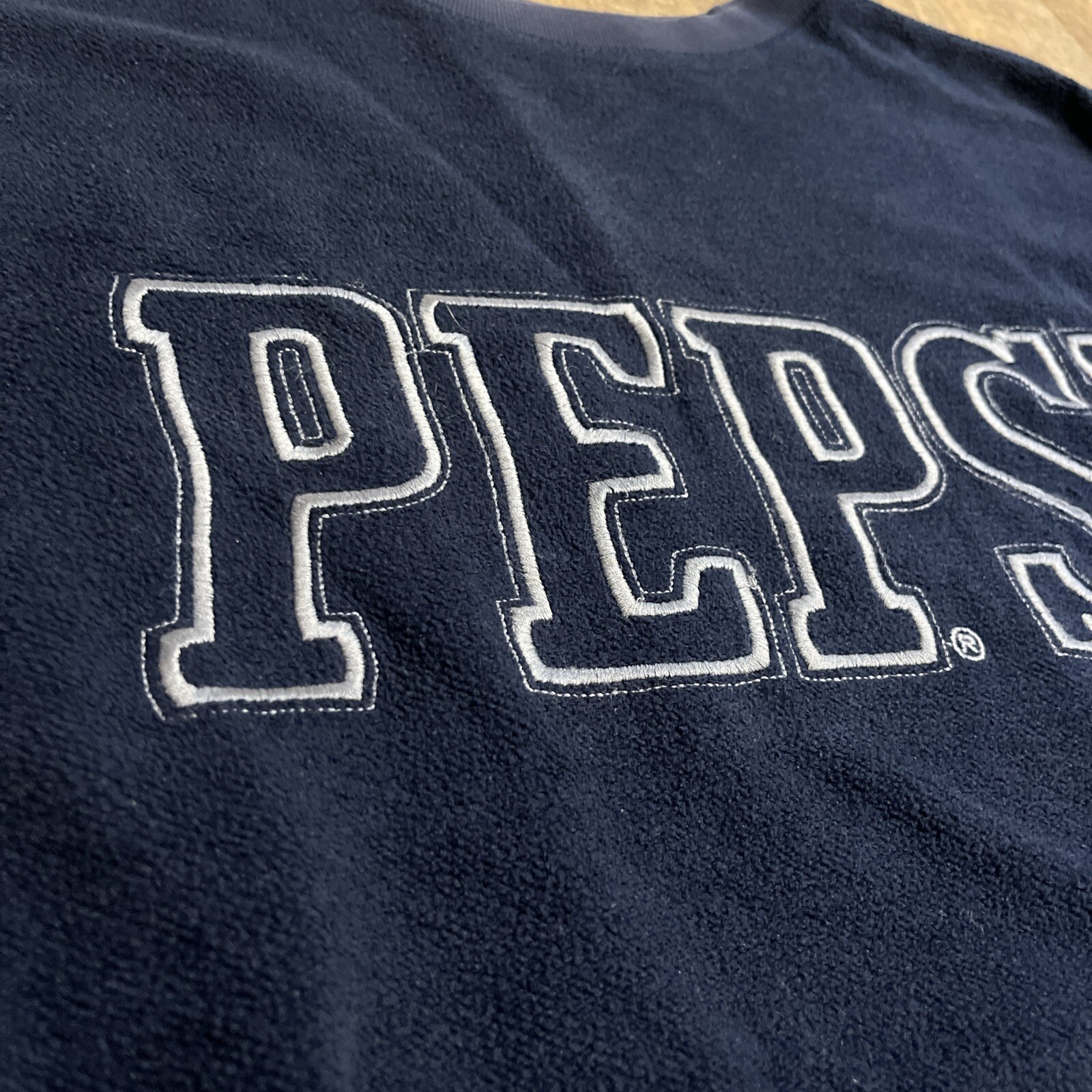 Vintage 90's PEPSI Spell Out Embroidered Sweatshirt Crewneck Navy Blue Size XL