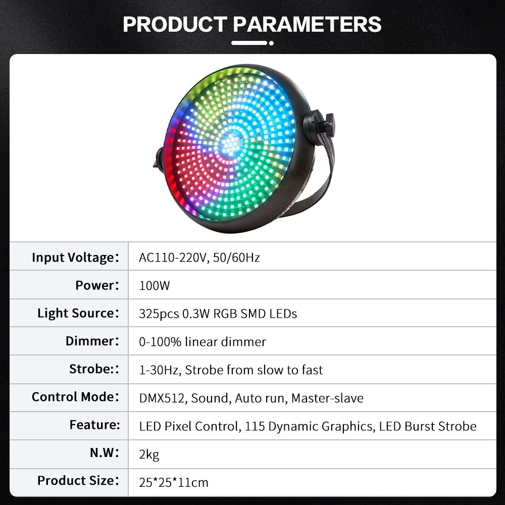 RGB 325 LED Strobe Light DMX Stage DJ Light Breathe Effect Pixel Flash Light