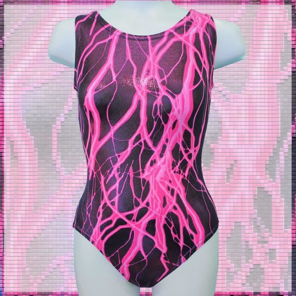 Gymnastics Leotard Girls sz CM Child 8 black hot pink metallic lightning NEW