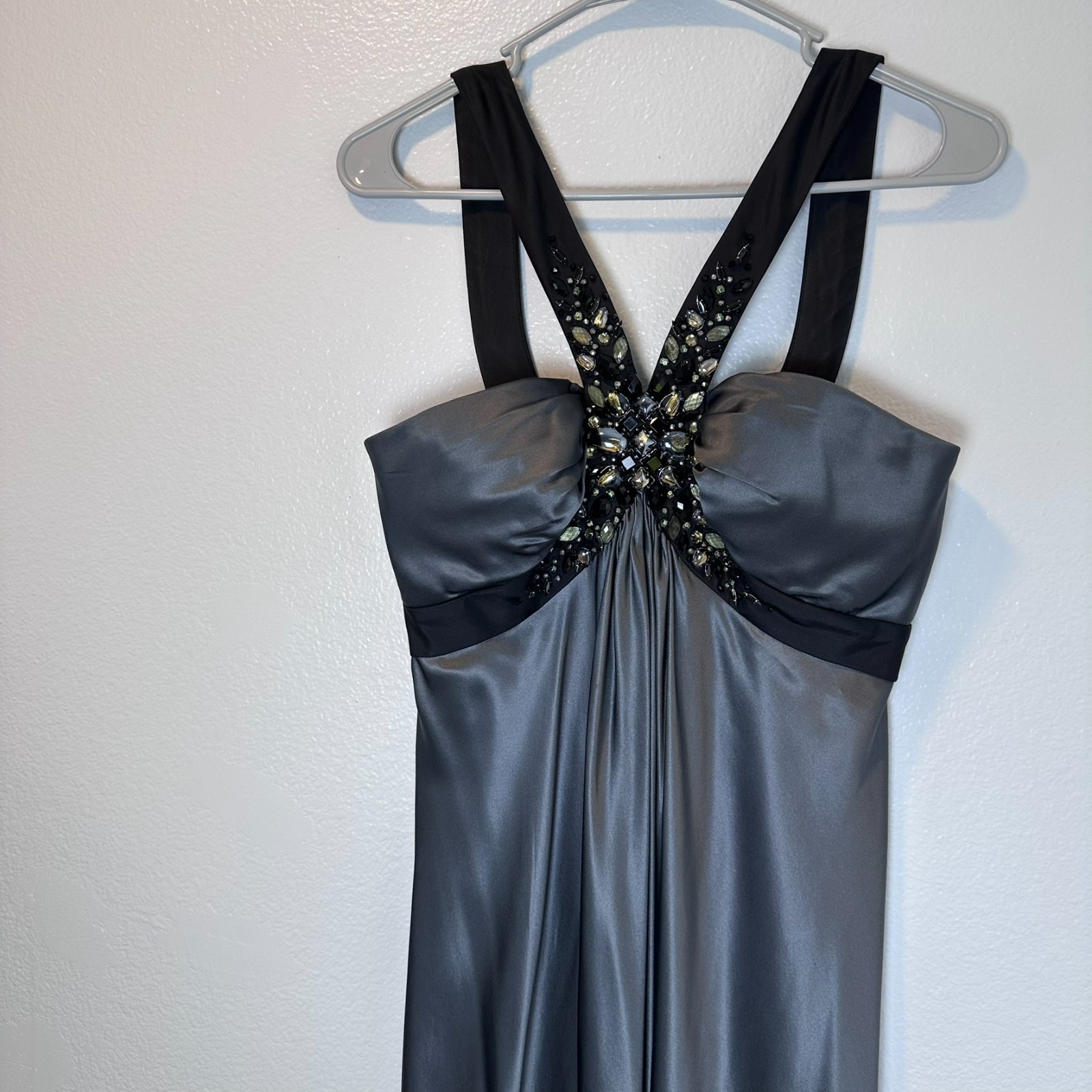 как выглядит MARC BOUWER GLAMIT Womens Dress Size 4 Gray 100 Silk Formal Beaded фото