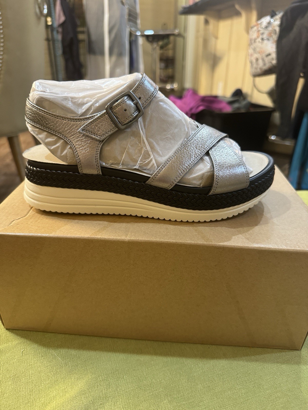 как выглядит Vionic Womens Mar Strappy Sandals In Pewter Leather Size 6 Platform фото