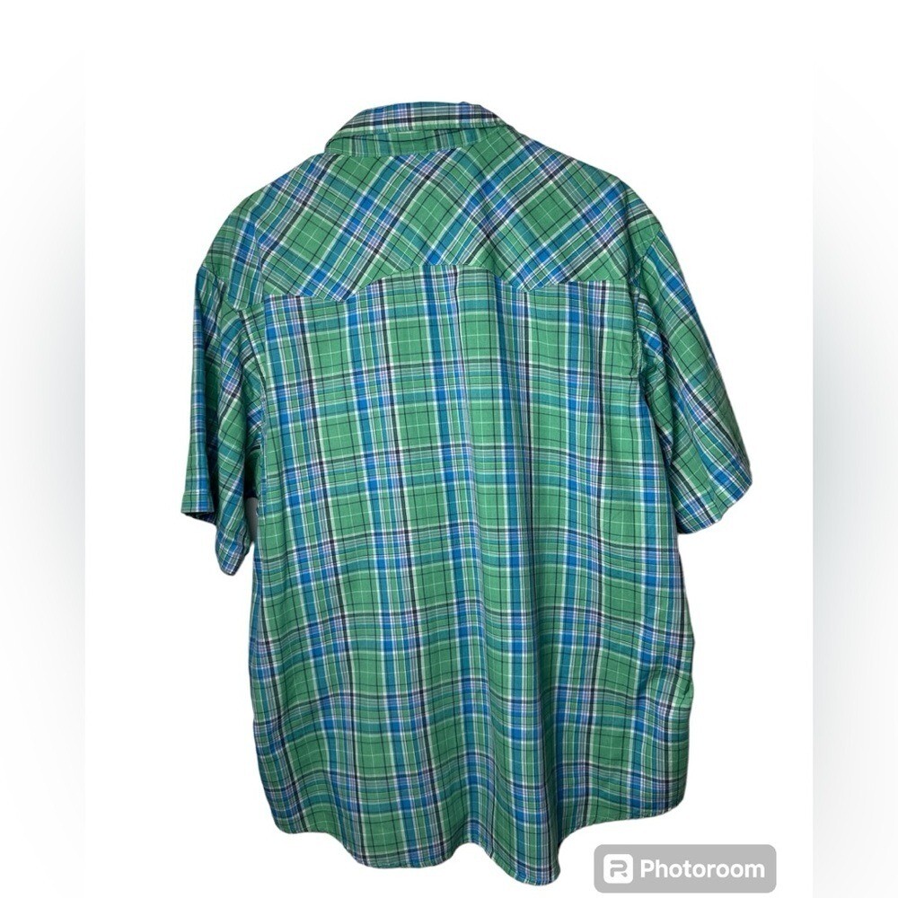 как выглядит Wrangler Mens Vintage Short Sleeve Pearl Snap Plaid Wrancher Shirt Size 2XL фото