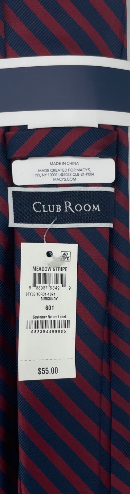 CLUB ROOM Men's Regular Tie Burgundy Meadow Stripe NEW MSRP: 55.