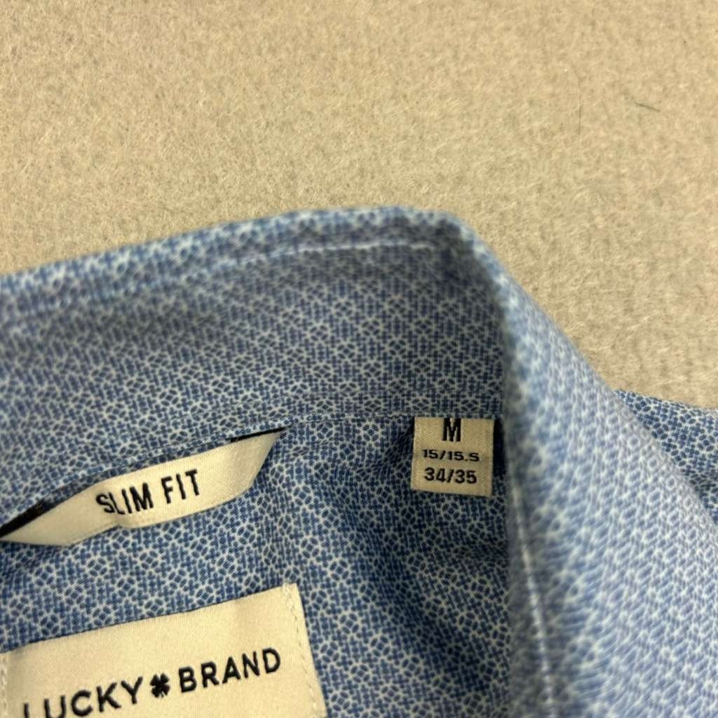 как выглядит Lucky Brand Shirt Mens Medium Blue Stretch Slim Fit Button Up Long Sleeves NWT фото