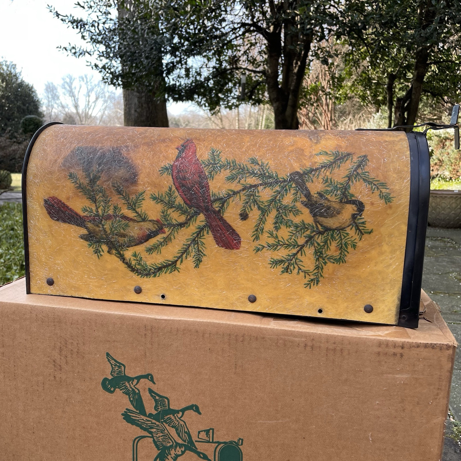 как выглядит Bacova Fiberglass Wrapped Mailbox Cardinal Decoration Black, Standard Post Mount фото