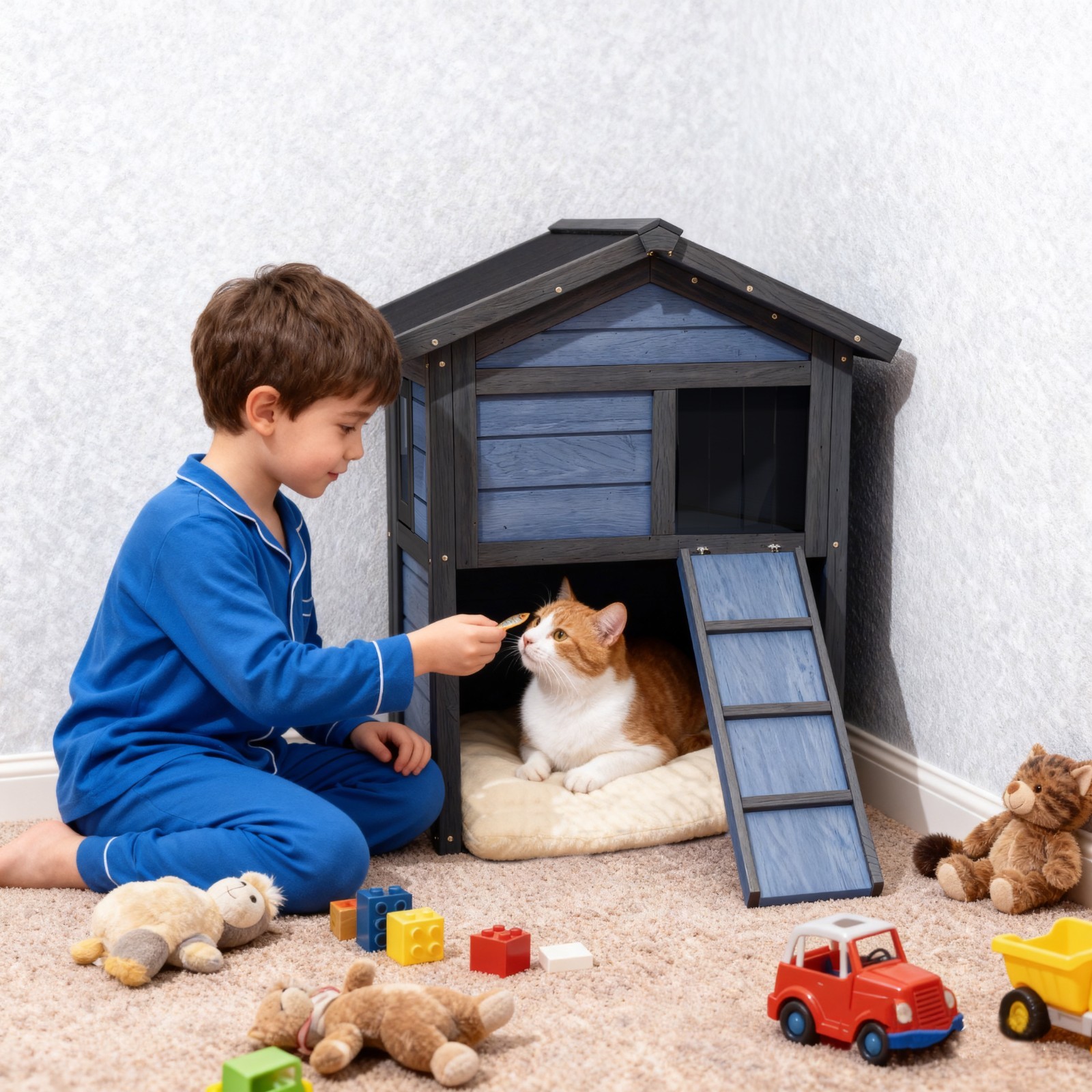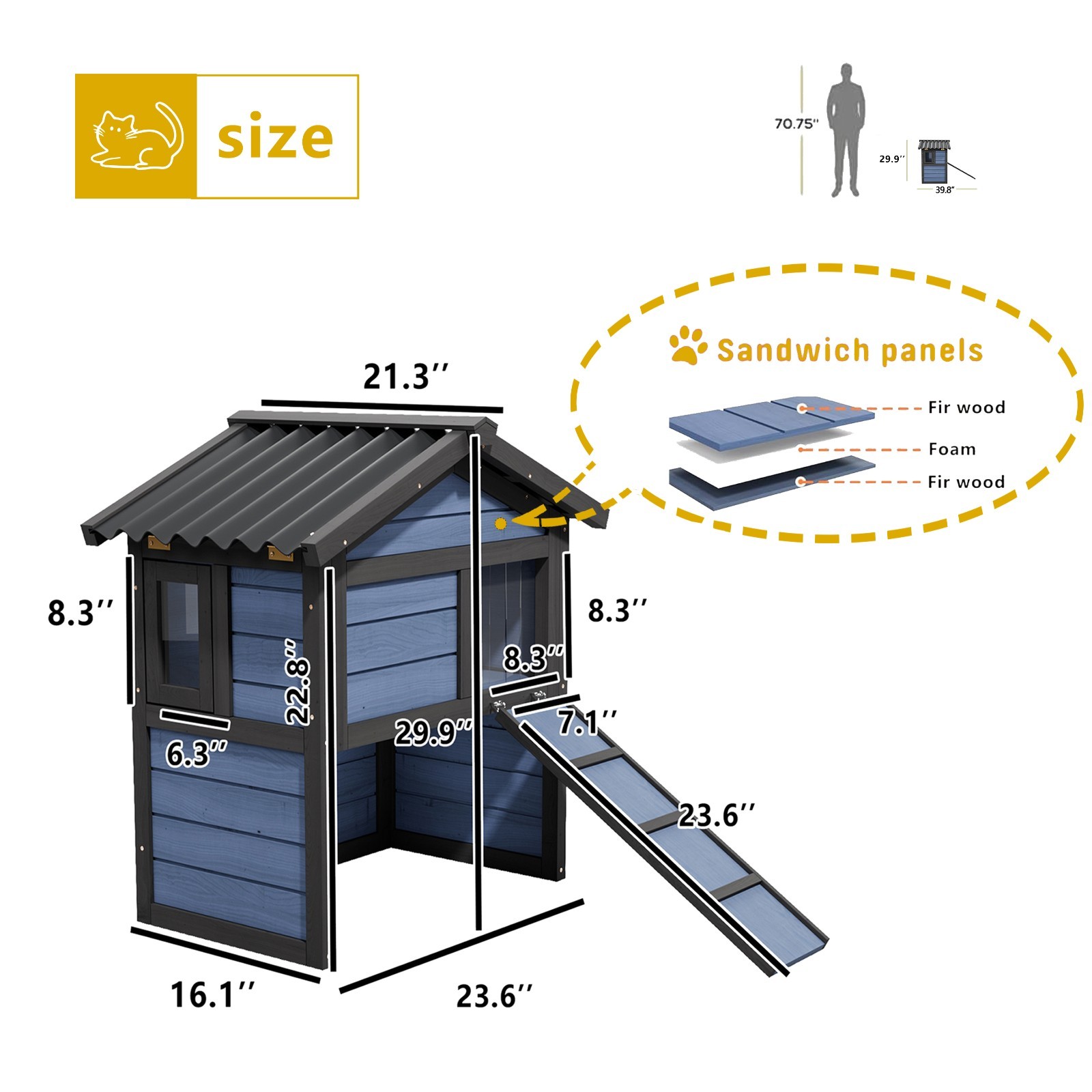 Outdoor Cat House, Outdoor Houses for Feral Cats Wooden Outside Cat Shelter