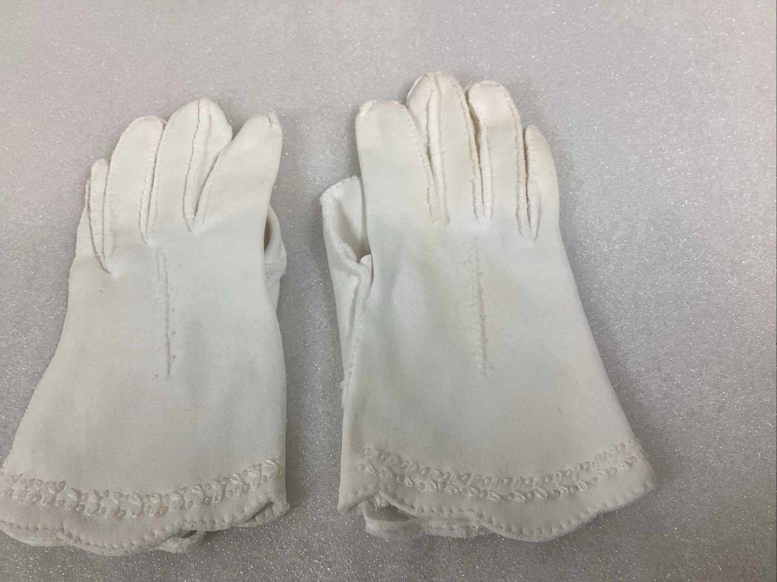 как выглядит Vintage Ladies Girl Short White/Ivory Gloves Set of 3 Pairs фото